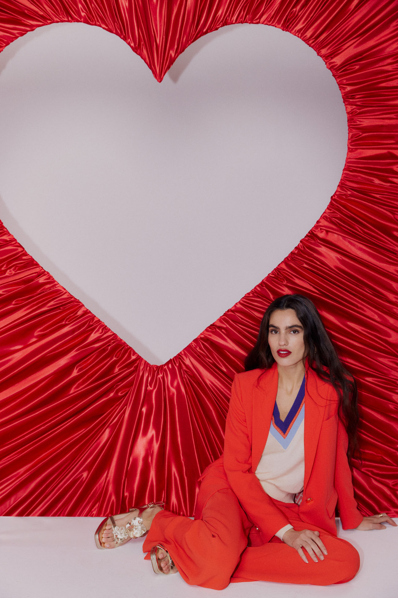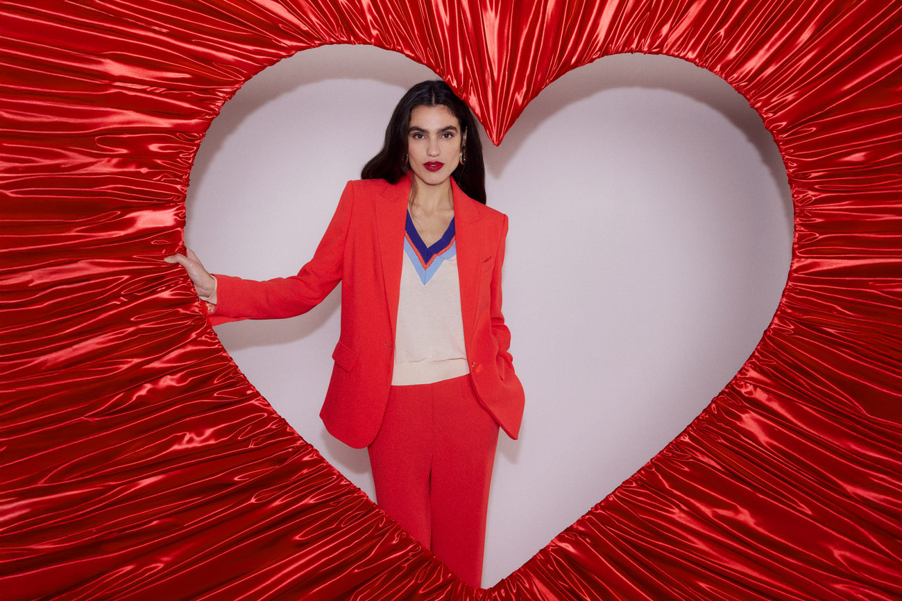 V-Ausschnitt Pullover mit Kontrastfarben und Zopfmuster Detail