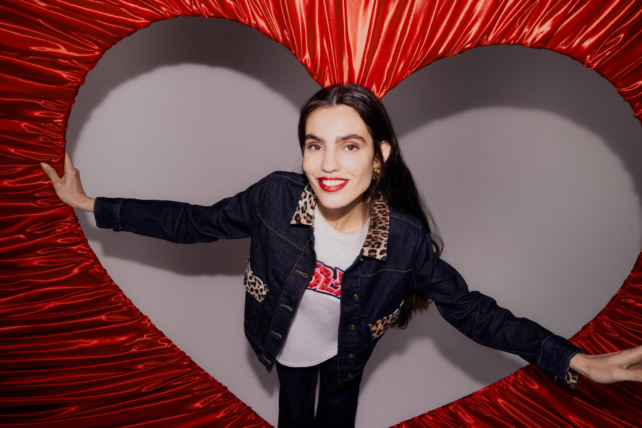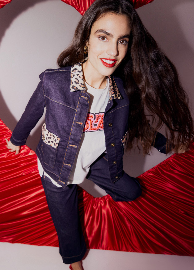 Kurze Jeansjacke mit Leopardenkragen und Flappdetails