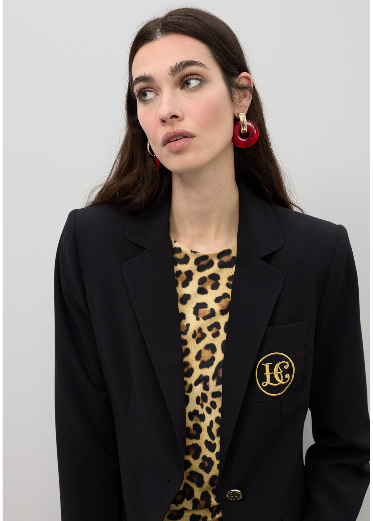 Tailliertes Sakko aus hochwertigem, weichem Stoff. Mit Revers-Taschen und goldenem Knopf. Gesticktes Logo-Detail auf der Brust, ideal für einen eleganten Look.