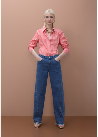 Moderne Jacke in Lederoptik, verziert mit runden goldenen Nieten. Lockerer Schnitt mit Reißverschluss und Reverskragen. Ideal, um deinem täglichen Look einen edgy Touch zu verleihen.