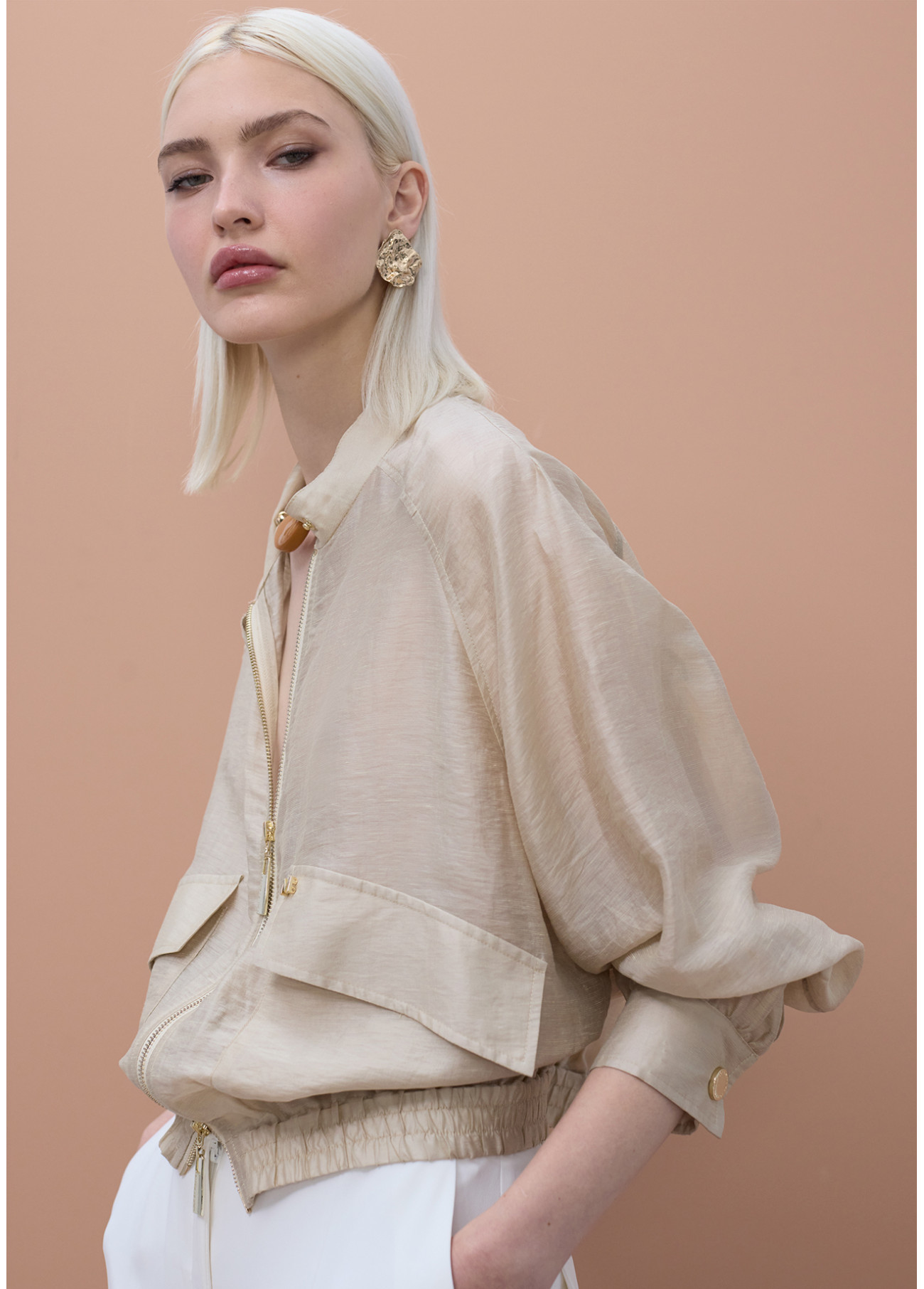 Leichte Bomberjacke mit Raglanärmeln, ideal für Übergangszeiten. Mit funktionalen Taschen und Reißverschluss. Ihr weicher Stoff und ihre Vielseitigkeit machen sie zu einem eleganten Kleiderschrank-Basic.