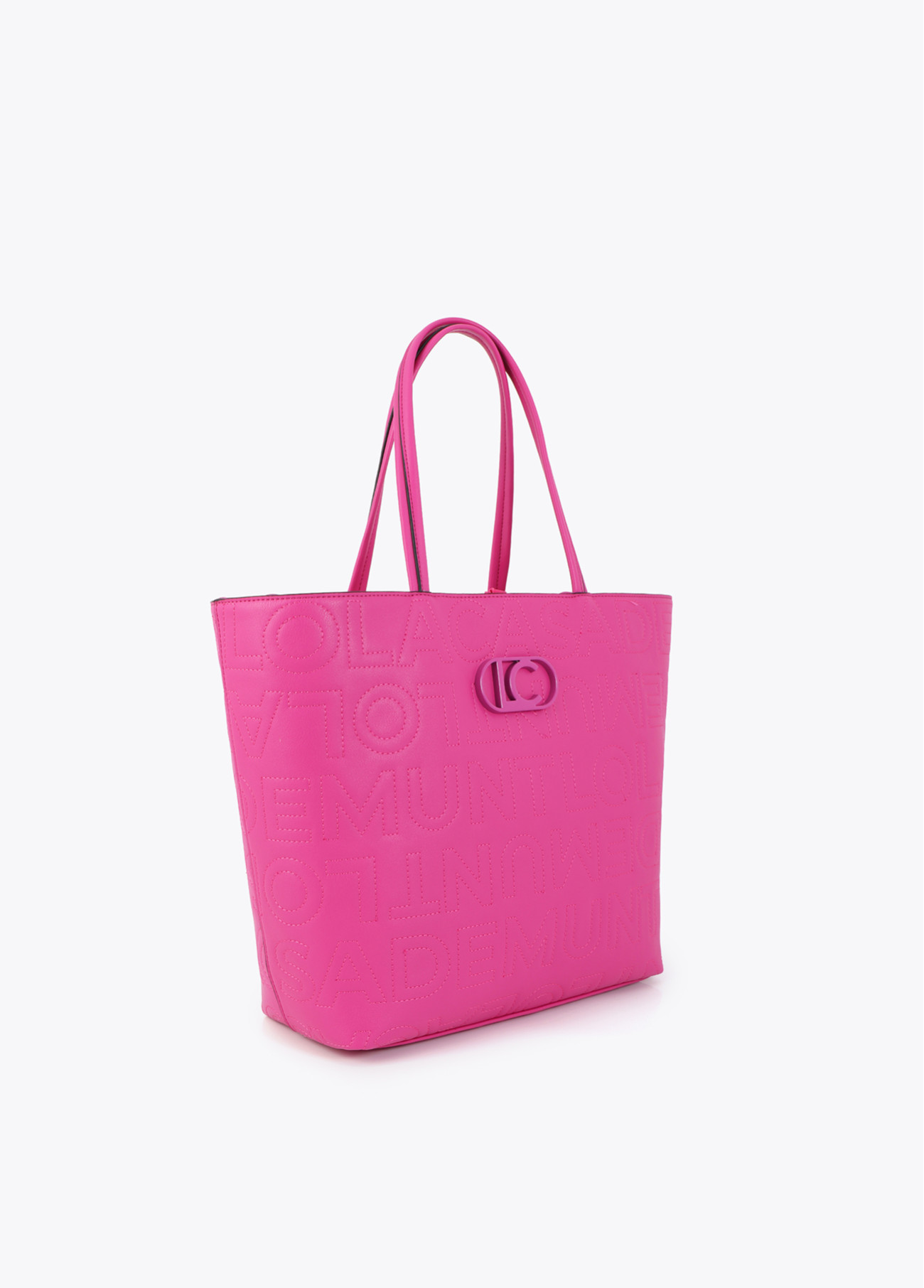 Eleganter unstrukturierter Shopper in lebhaftem Fuchsia. Design mit Monogramm-Stitching und langen Griffen für täglichen Komfort. Geräumiges Inneres mit verstellbarem Kordelzugverschluss.