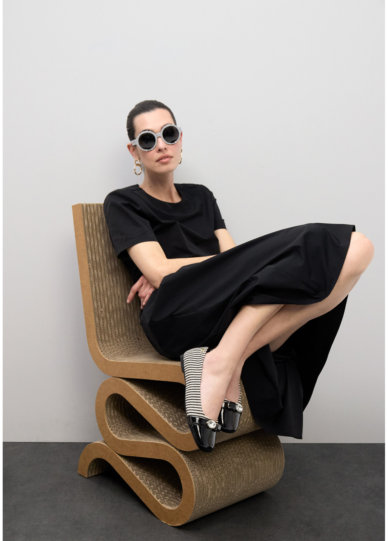 Flache Schuhe aus Canvas-Stoff mit Streifenmuster und Kristallverzierungen. Runde Lackspitze und Innenfutter im Animal-Print. Perfekt für legere Looks mit elegantem Touch.