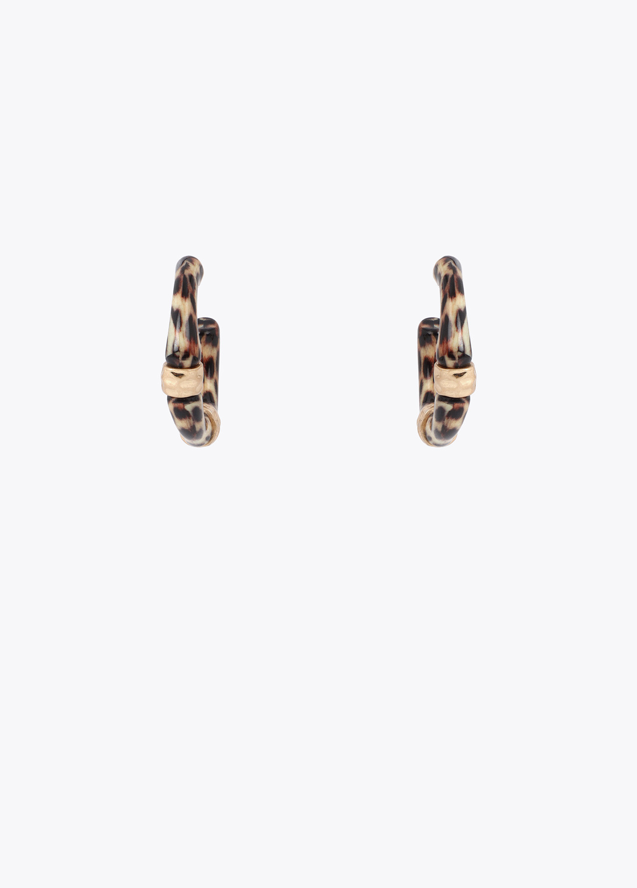 Kreolen mit einem kühnen Bambuseffekt-Design und Animal Print. Hergestellt aus strapazierfähigem Material, mit sicherem Verschluss. Ein vielseitiges Accessoire, um jedem Outfit einen wilden und eleganten Touch zu verleihen.