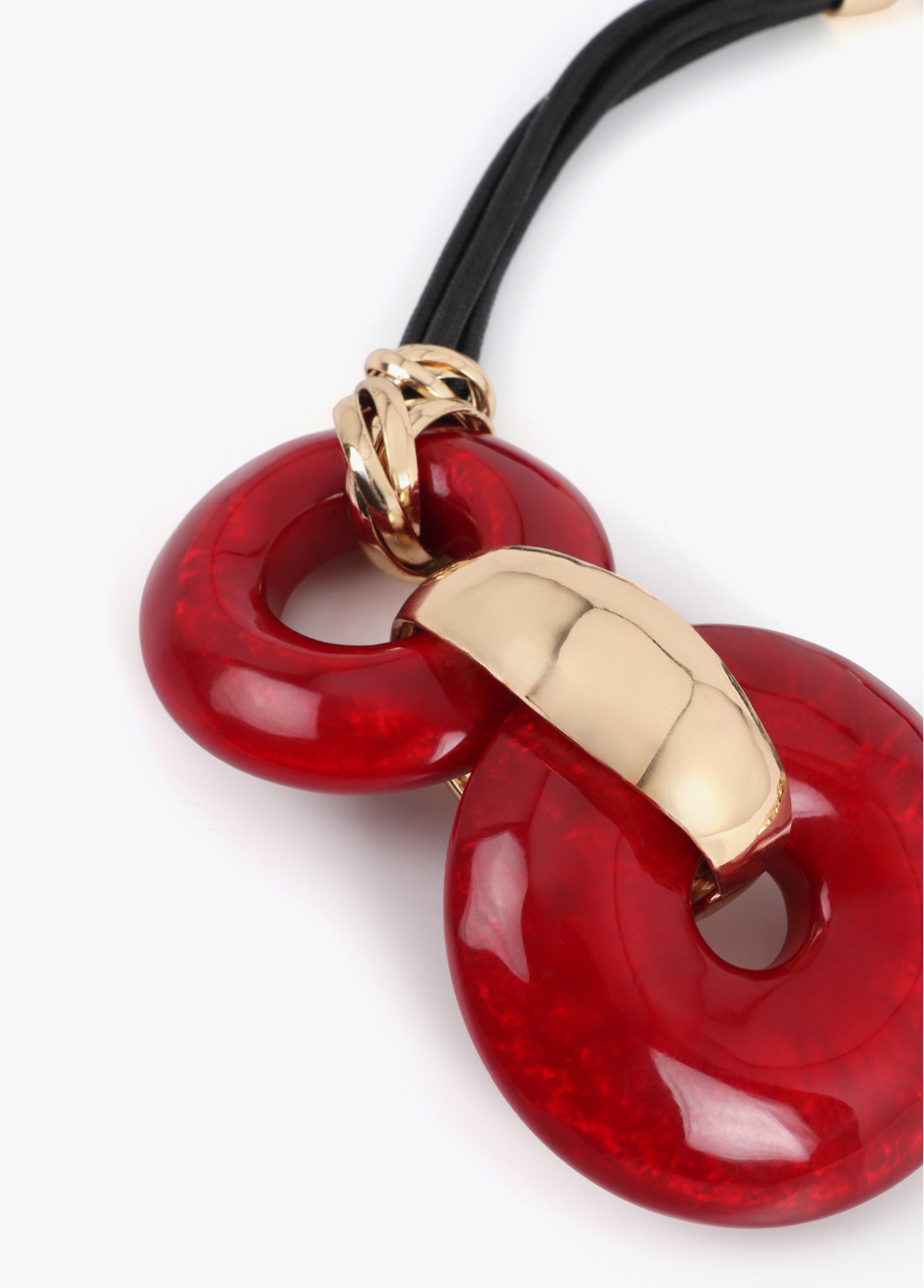 Bezaubern Sie mit dieser kurzen Halskette aus Acrylscheiben in lebendigem Rot. Ergänzt durch goldene Details und ein verstellbares schwarzes Band. Ein Accessoire, das jedem Look einen kühnen Touch verleiht, ideal für besondere Abende.