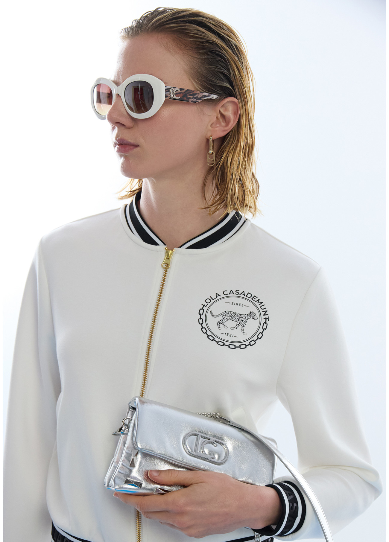 Bomberjacke aus Scuba-Stoff mit dekorativem Band und Rückendruck. Frontreißverschluss und Rundhalsausschnitt. Elastische Bündchen und Saum. Modernes und unverwechselbares Design, ideal für einen legeren und zeitgemäßen Look. Markenlogo auf der Vorderseite für einen exklusiven Touch.