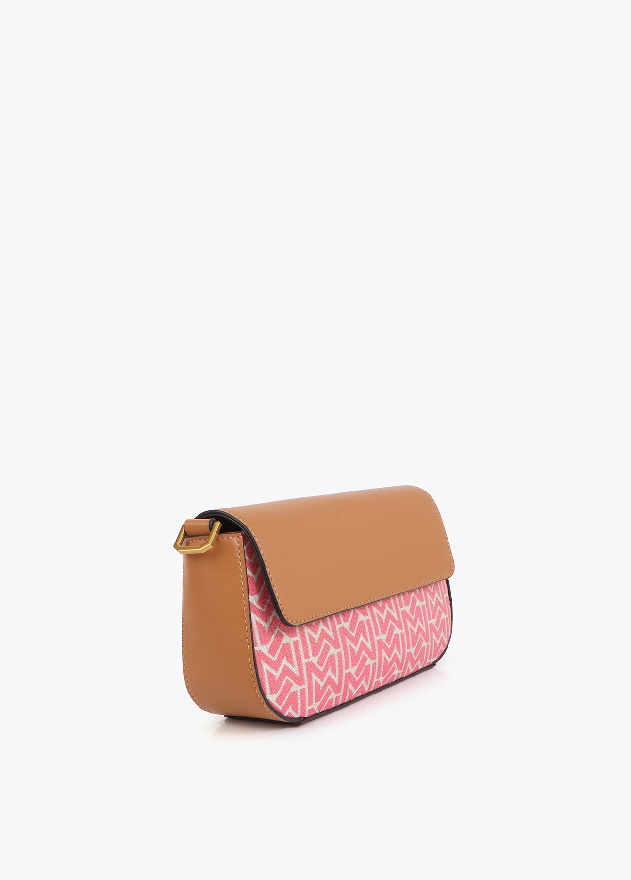 Elegante Umhängetasche mit kombinierter Klappe. Kunstleder und Jacquard-Design in Braun- und Rosatönen. Verstellbarer goldener Kettenriemen. Perfekt für jede Gelegenheit, die einen Hauch von Raffinesse erfordert. Magnetverschluss und geräumiges Innenleben für Ihre Essentials.