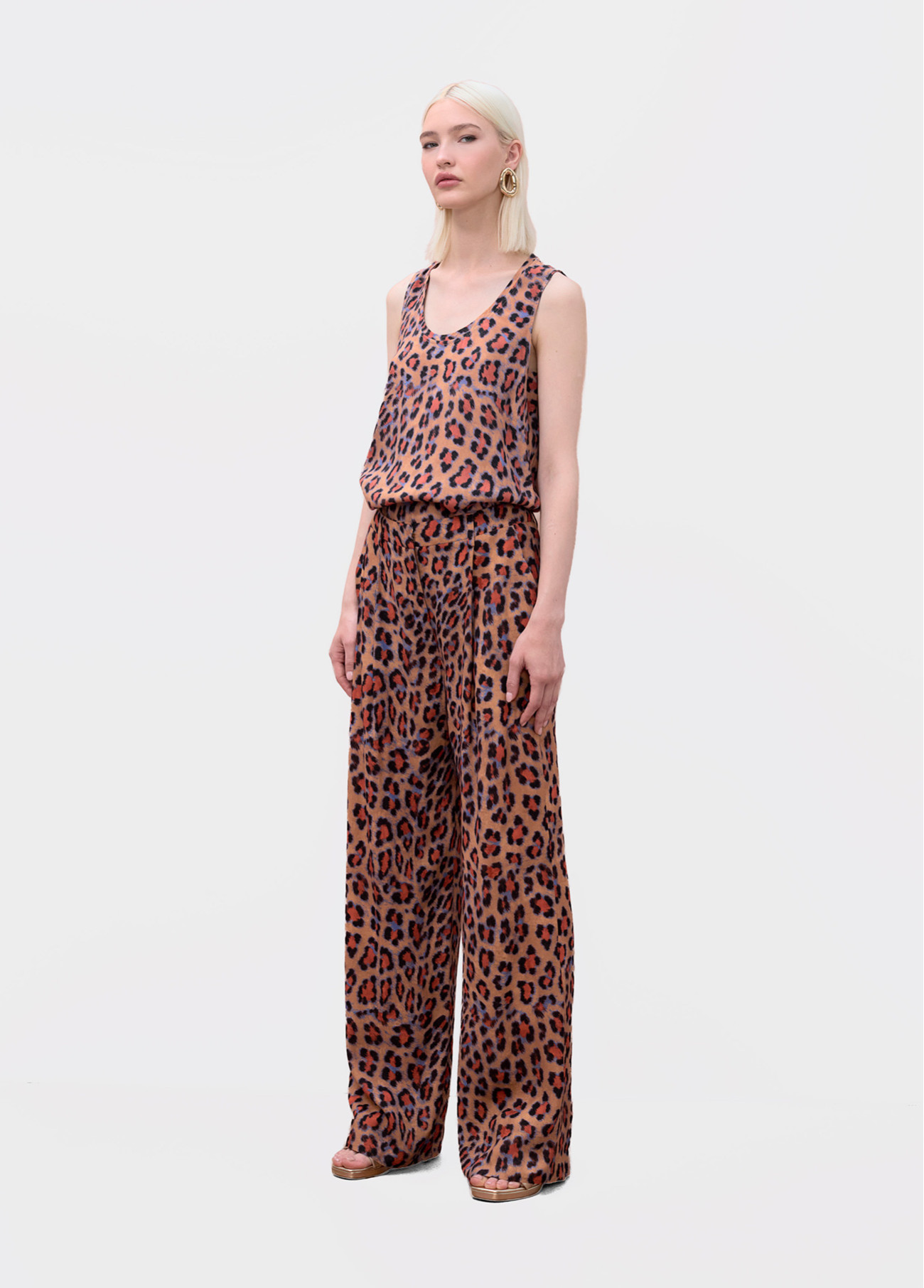 Top mit Rundhalsausschnitt und einem lebendigen Tiermuster. Hergestellt aus leichtem Stoff, ideal für warme Klimazonen. Gerades Design für Komfort und Stil. Ideal für mutige Looks.