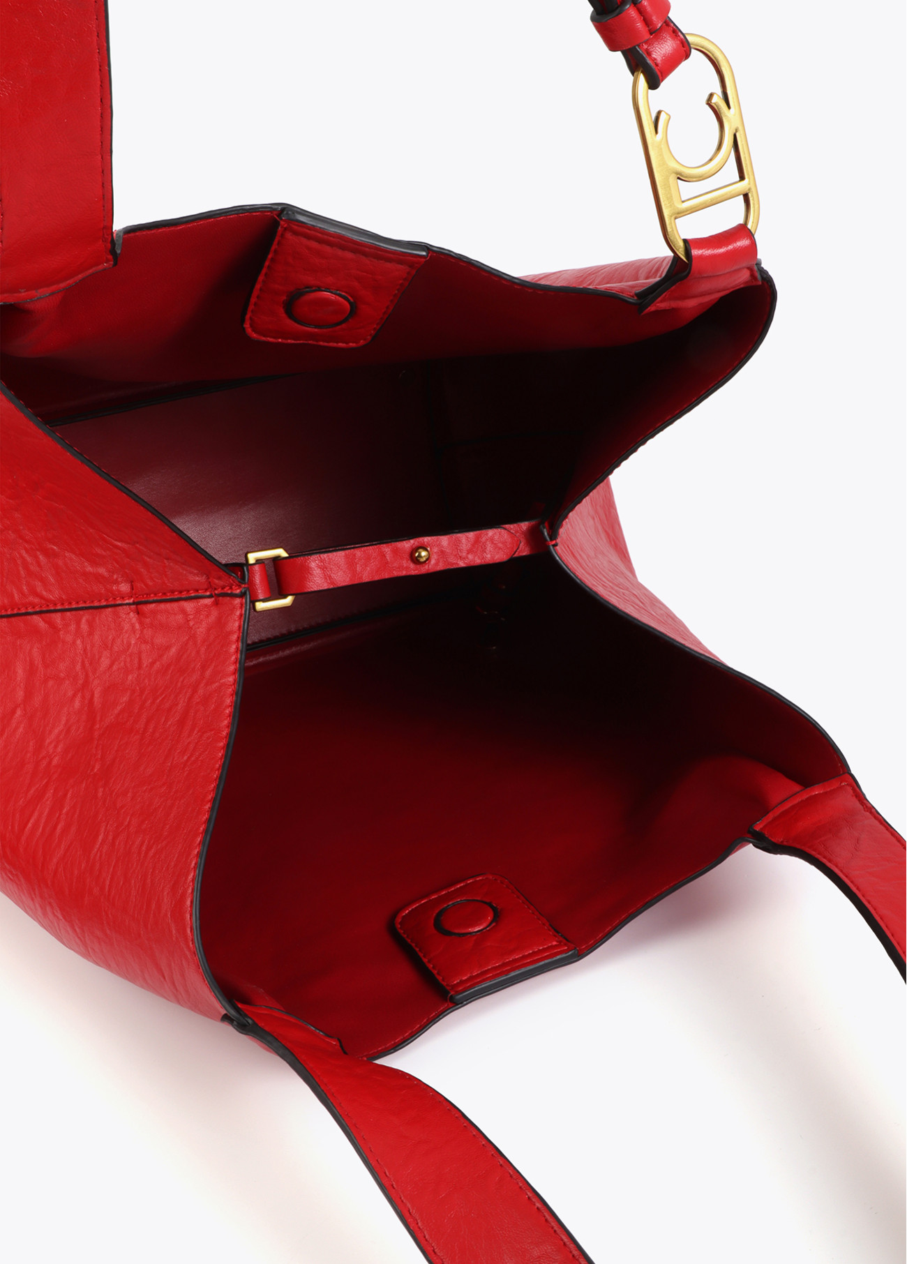 Eleganter roter Shopper mit Faltendesign. Griff mit graviertem goldenen Logo. Geräumiges Inneres mit idealen Organisationsfächern. Robustes und hochwertiges Material.
