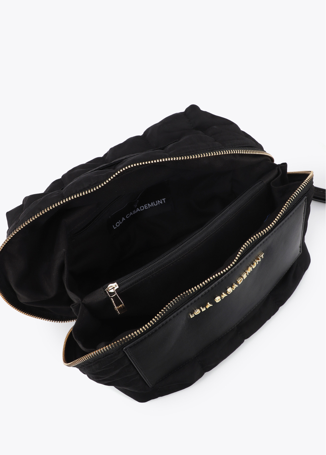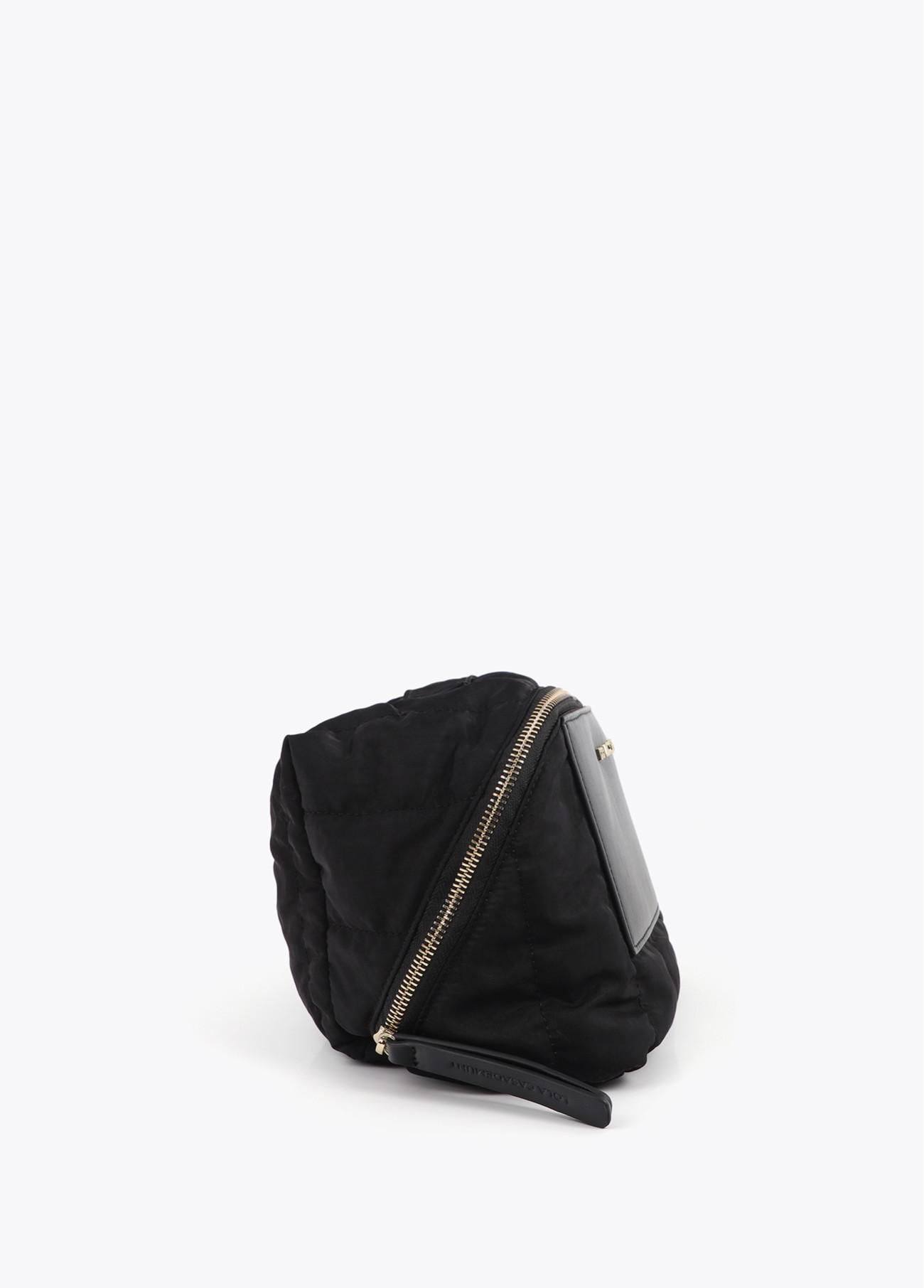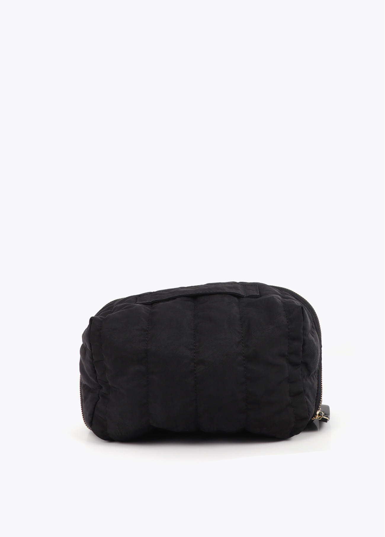 Elegante Kulturtasche aus Nylon und PU, mit praktischer Fronttasche. Geräumiges Inneres und goldener Reißverschluss. Kompaktes Design für stilvolles Tragen Ihrer Essentials.