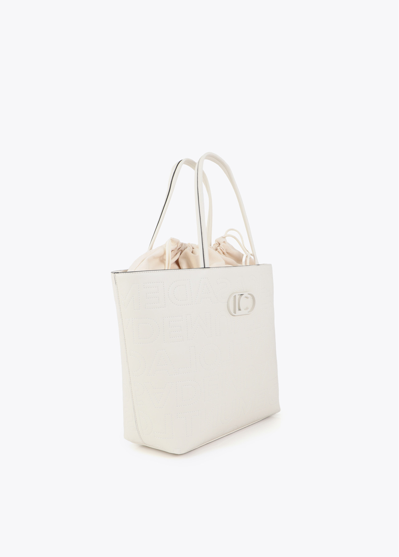 Reconstructed Shopper in neutraler Farbe mit Monogramm-Steppnähten. Geräumiges und funktionales Design mit verstellbarem Kordelzugverschluss. Ideal für den täglichen Gebrauch und ungezwungene Anlässe.