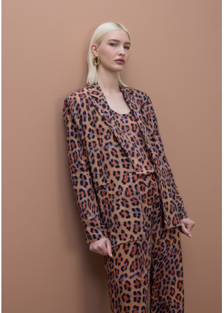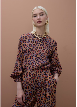 Top mit Rundhalsausschnitt und einem lebendigen Tiermuster. Hergestellt aus leichtem Stoff, ideal für warme Klimazonen. Gerades Design für Komfort und Stil. Ideal für mutige Looks.