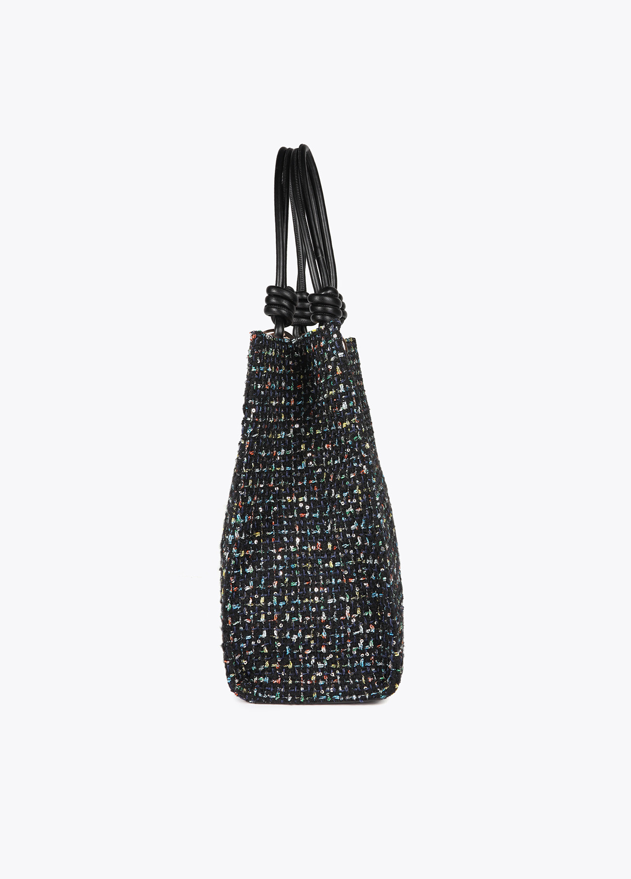 Elegante Tasche aus Tweed-Gewebe mit farbenfroher Ausführung. Mit Kunstledergriffen, goldenen Metallverzierungen und praktischem Innenbeutel. Perfekt, um jedem Outfit eine elegante Note zu verleihen.