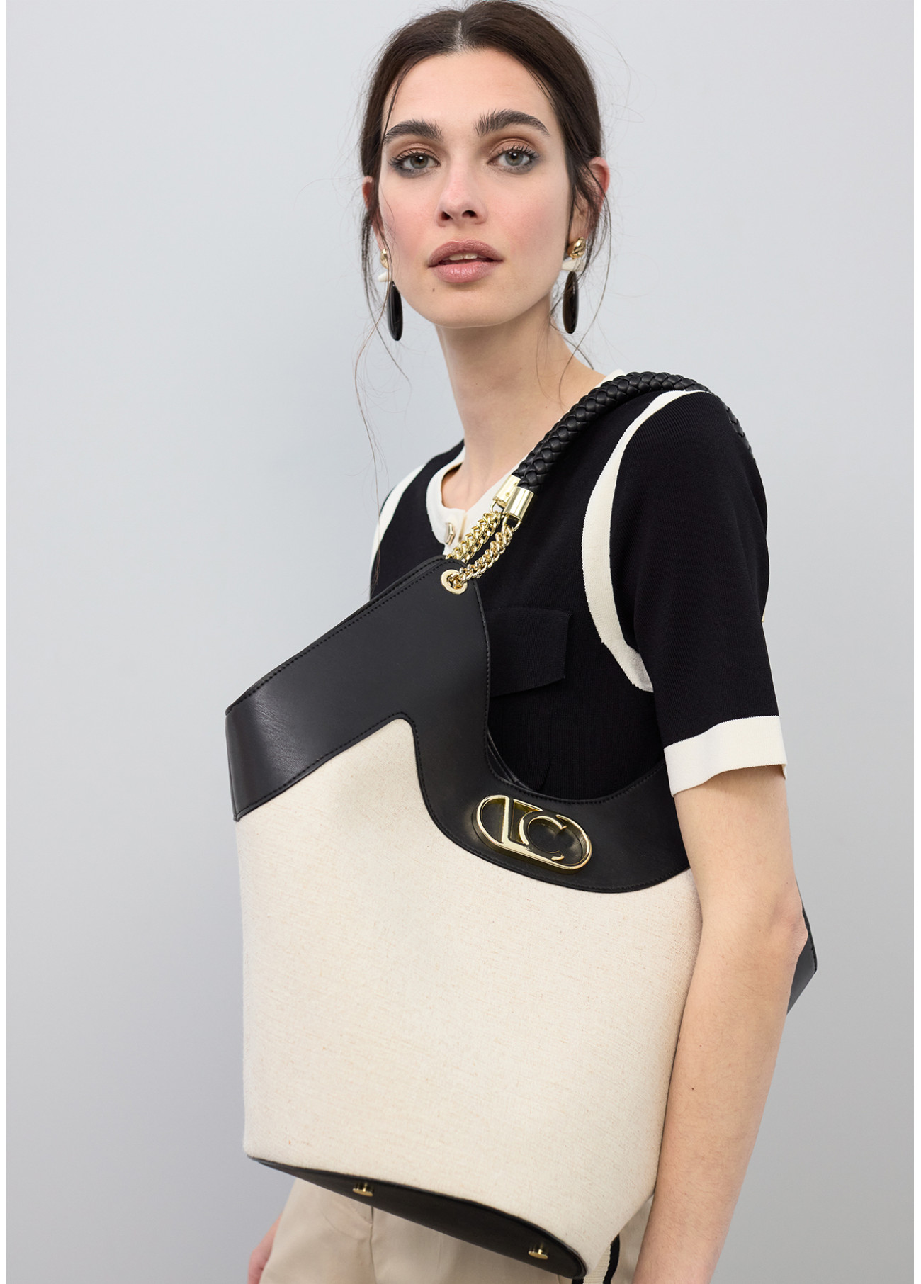 Kurzärmliger Cardigan aus Strickgewebe mit Details aus Kontrastripp. Mit eleganten metallischen Herzknöpfen. Perfekt für einen eleganten und bequemen Look.
