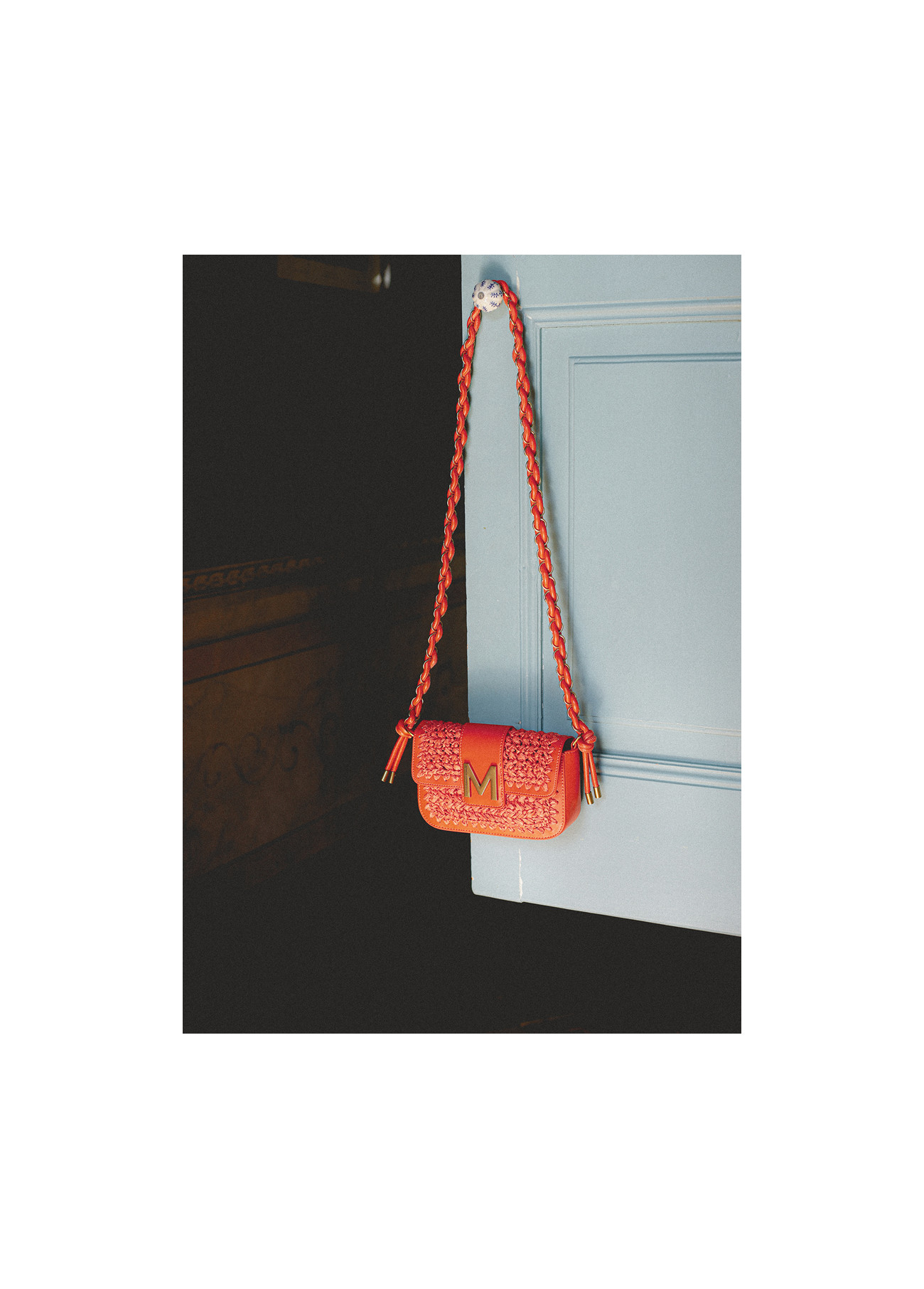 Kombinierte Rattan- und Kunstleder-Umhängetasche