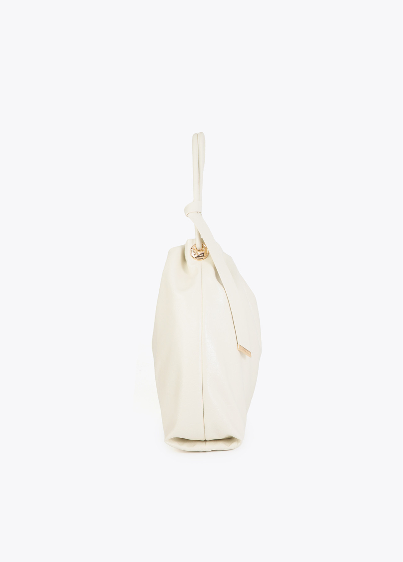 Elegant white shopper bag with bow detail and gold logo. Made of high-quality synthetic leather. Includes magnetic closure and spacious interior, perfect for daily use.