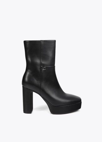 Platform boot with suede effect and elevated platform. Mid-calf design with side zipper closure. Wide 10 cm heel for added stability. Metal logo on the side.