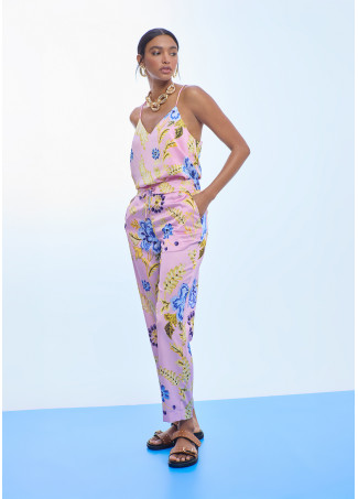 Oversized shirt crafted in smooth satin featuring a vibrant floral print. Soft to the touch, it offers an elegant drape and relaxed fit. Long sleeves with adjustable cuffs and a classic collar. Perfect for adding a touch of color to any outfit.