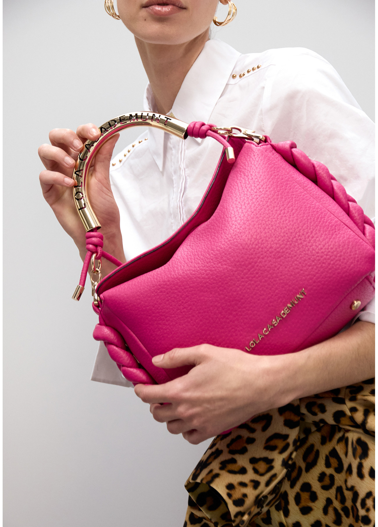 Crossbody Bag with Perforated Metal Handle