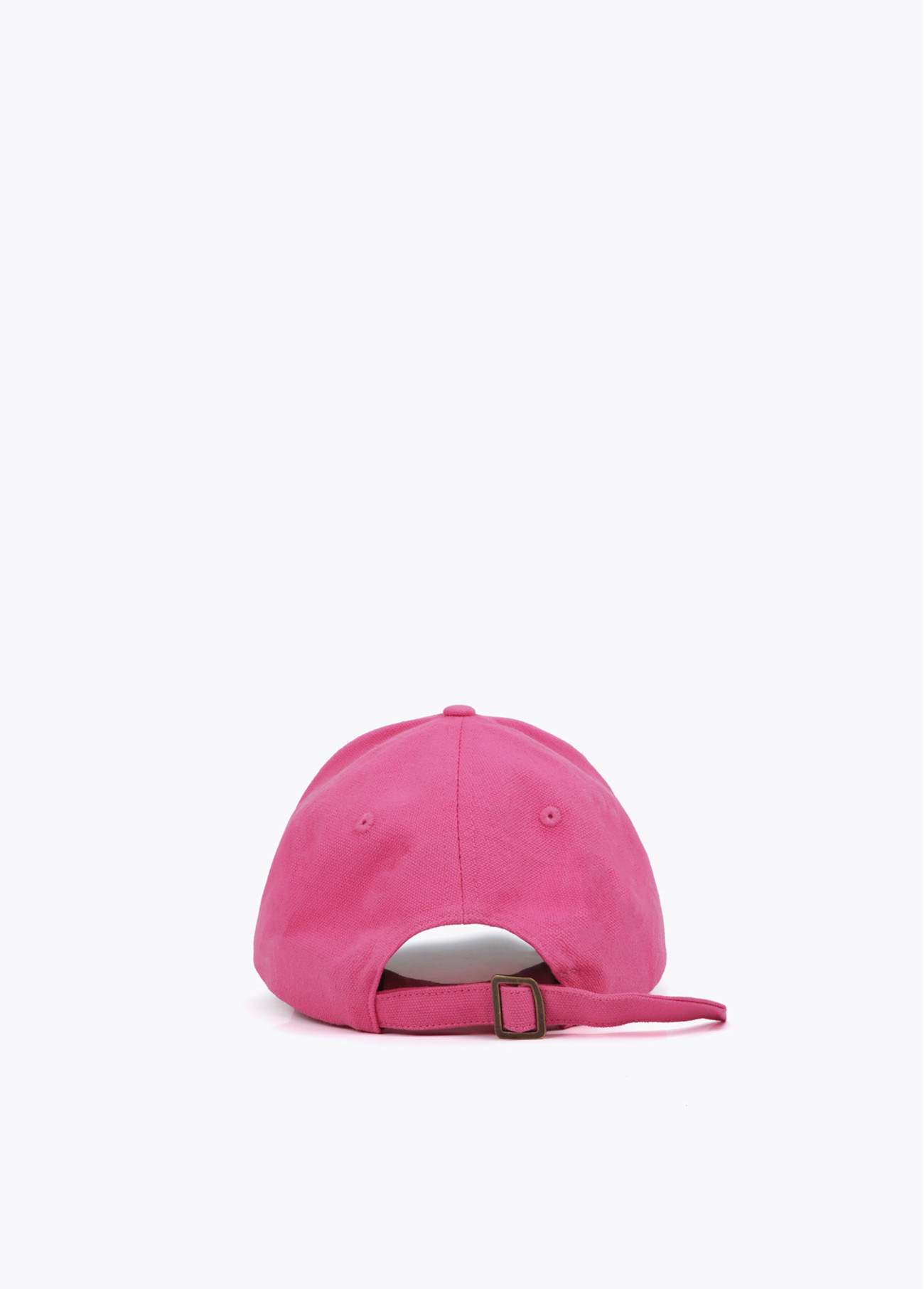 Adjustable cap in vibrant pink with an embroidered logo on the front. Visor with leopard print interior. Perfect for a casual and modern look.