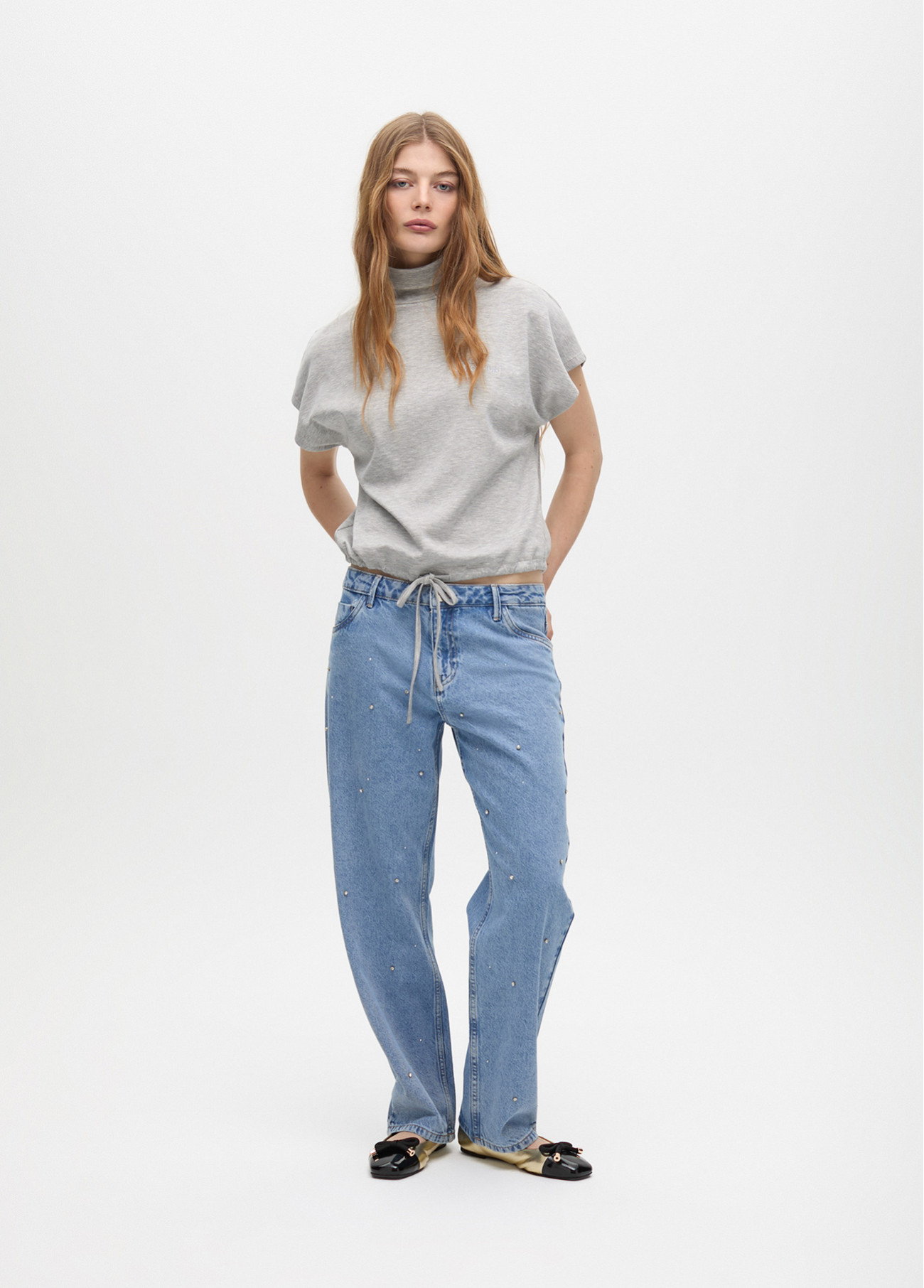 High neck T-shirt with adjustable waist