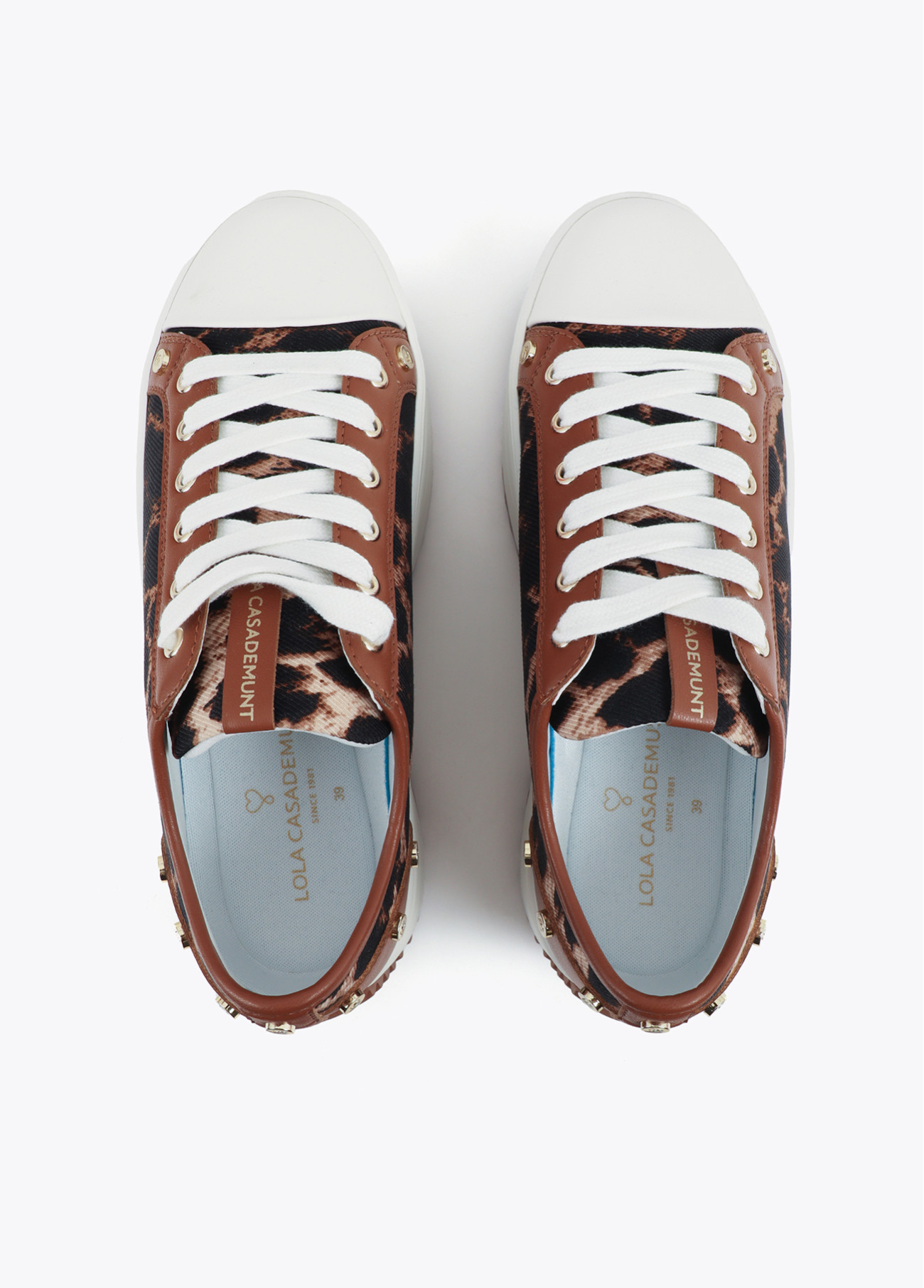 Add a wild touch to your style with these platform sneakers in leopard print. Golden stud details and thick sole for added comfort. Made from high-quality materials ensuring durability and comfort. Perfect for an urban, laid-back look.