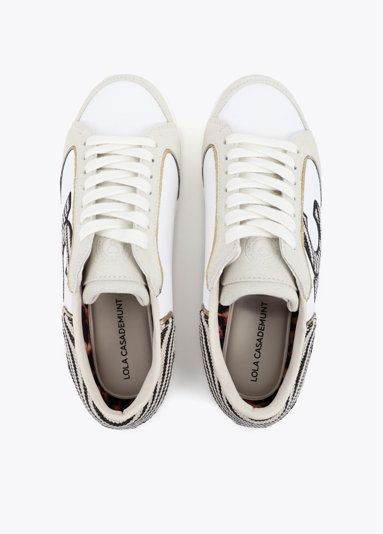 Stylish sneaker featuring a logo design on the sides. Crafted in combined fabrics with leather details for a sophisticated look. Non-slip rubber sole.