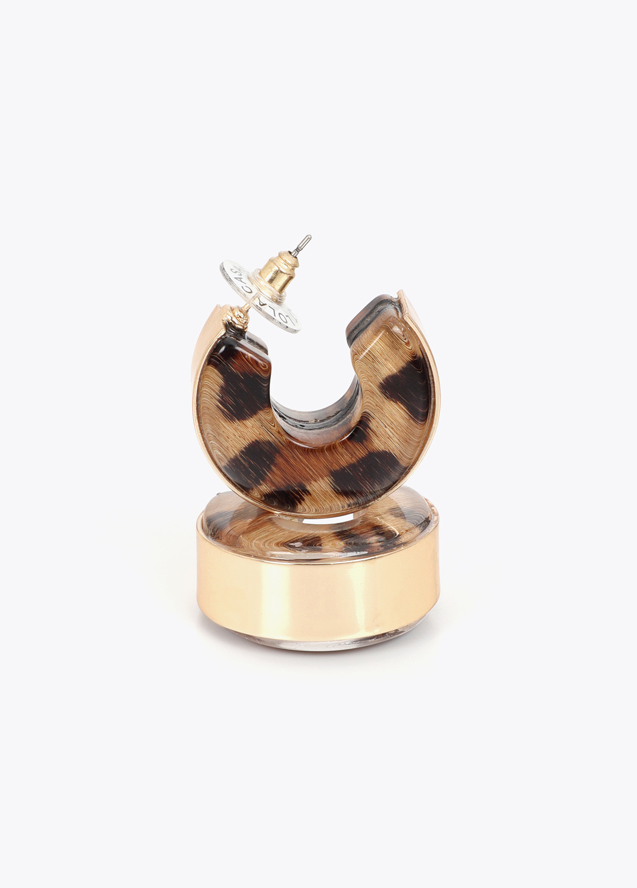 Elegant hoops with a combination of golden metal and animal print details. A modern and sophisticated accessory. Stud closures for added security. Blends classic style with a wild touch.