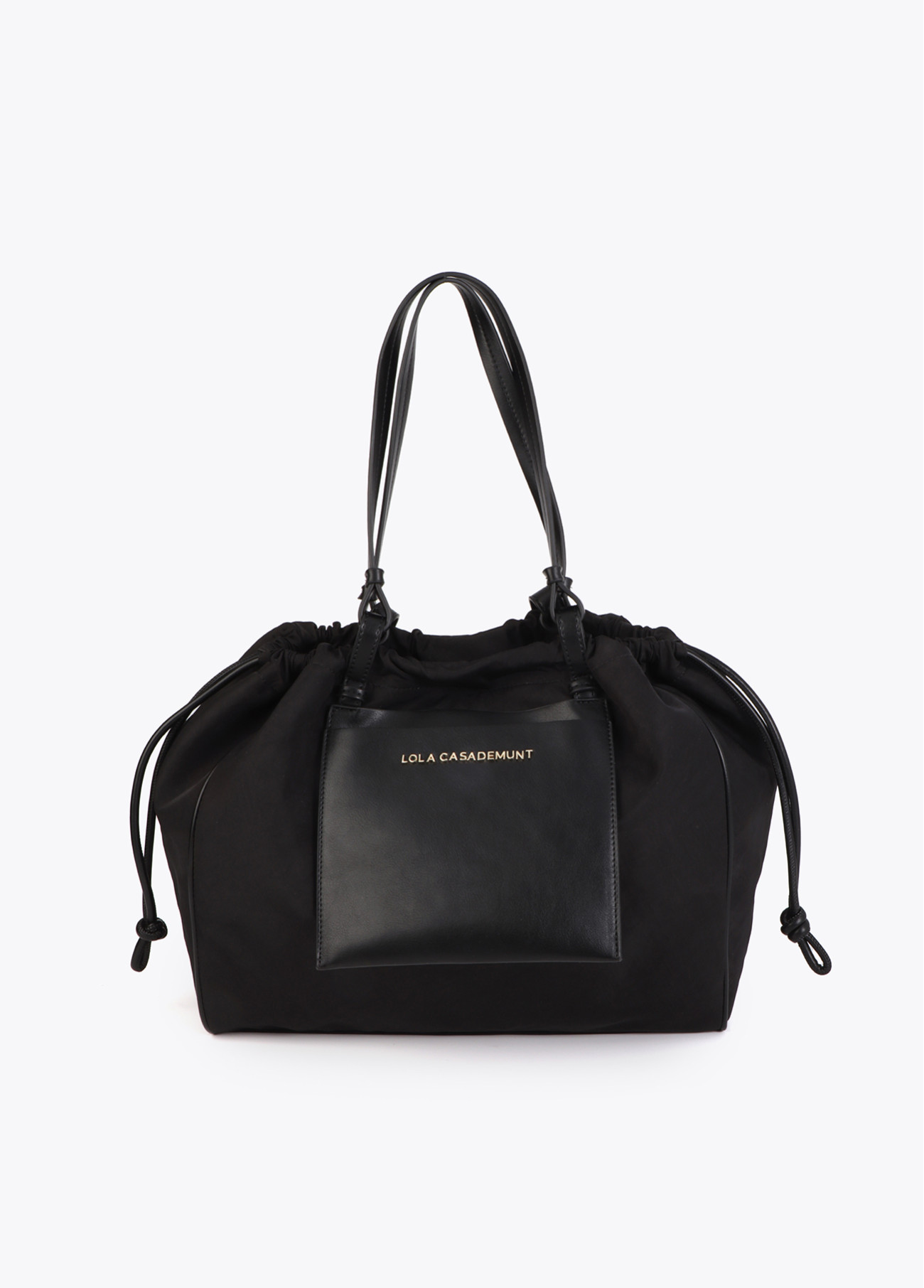 Sophisticated shopper made from nylon and PU. Spacious capacity with adjustable drawstring closure. Long, comfortable handles for easy carrying. Ideal for day-to-day use. Features Lola Casademunt logo on front. Comes with a small zippered pouch inside.