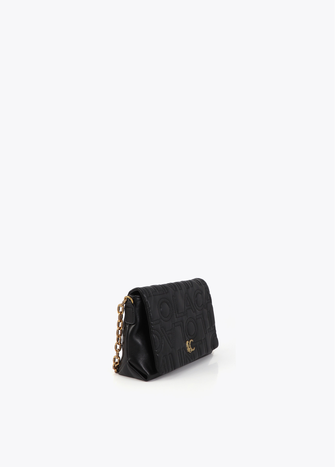 Elegant crossbody with textured flap featuring standout quilted logo. Compact design with adjustable gold chain and secure magnetic closure. Perfect for a sophisticated look.