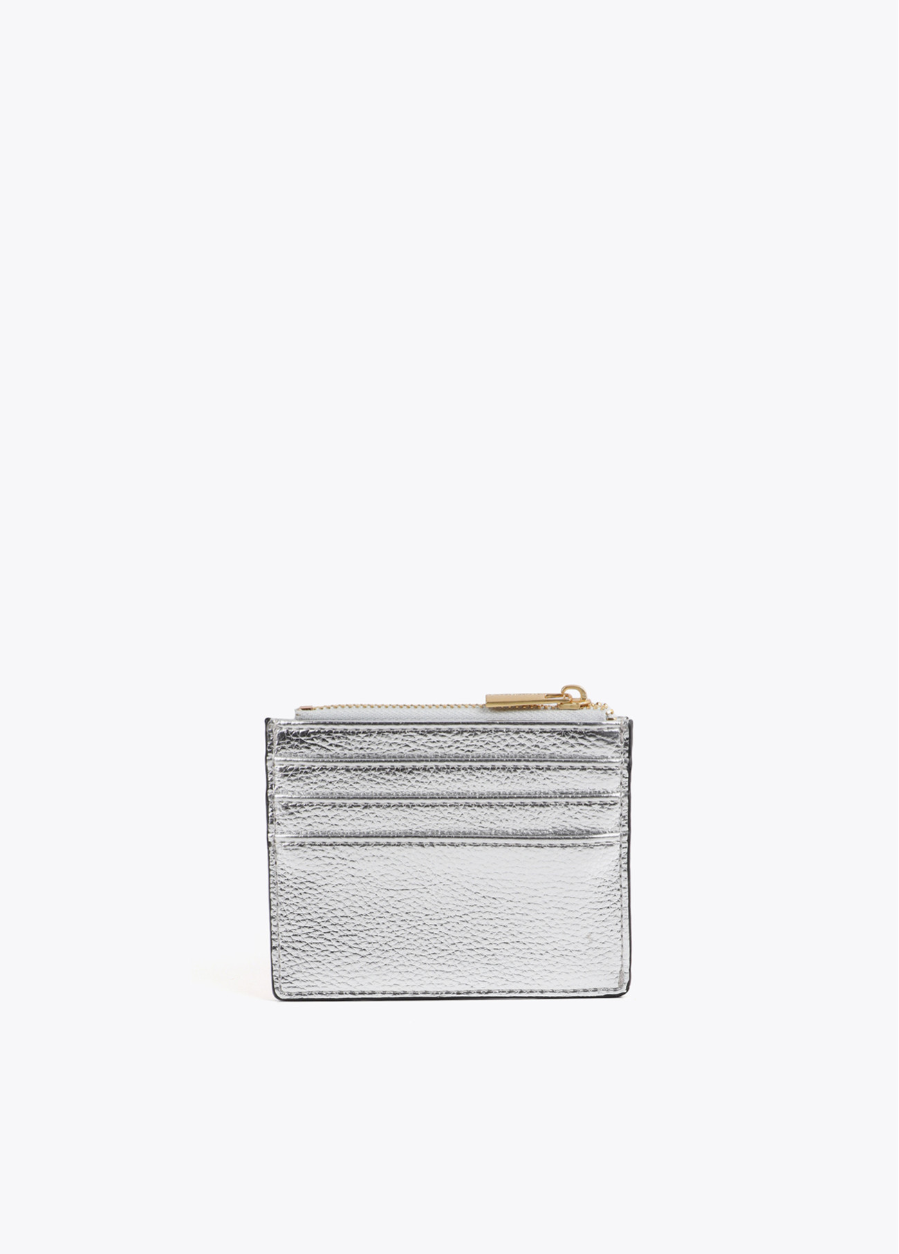 Elegant metallic card holder with zipper closure. Features multiple card slots and a highlighted gold logo. Compact and modern design, perfect for any occasion.