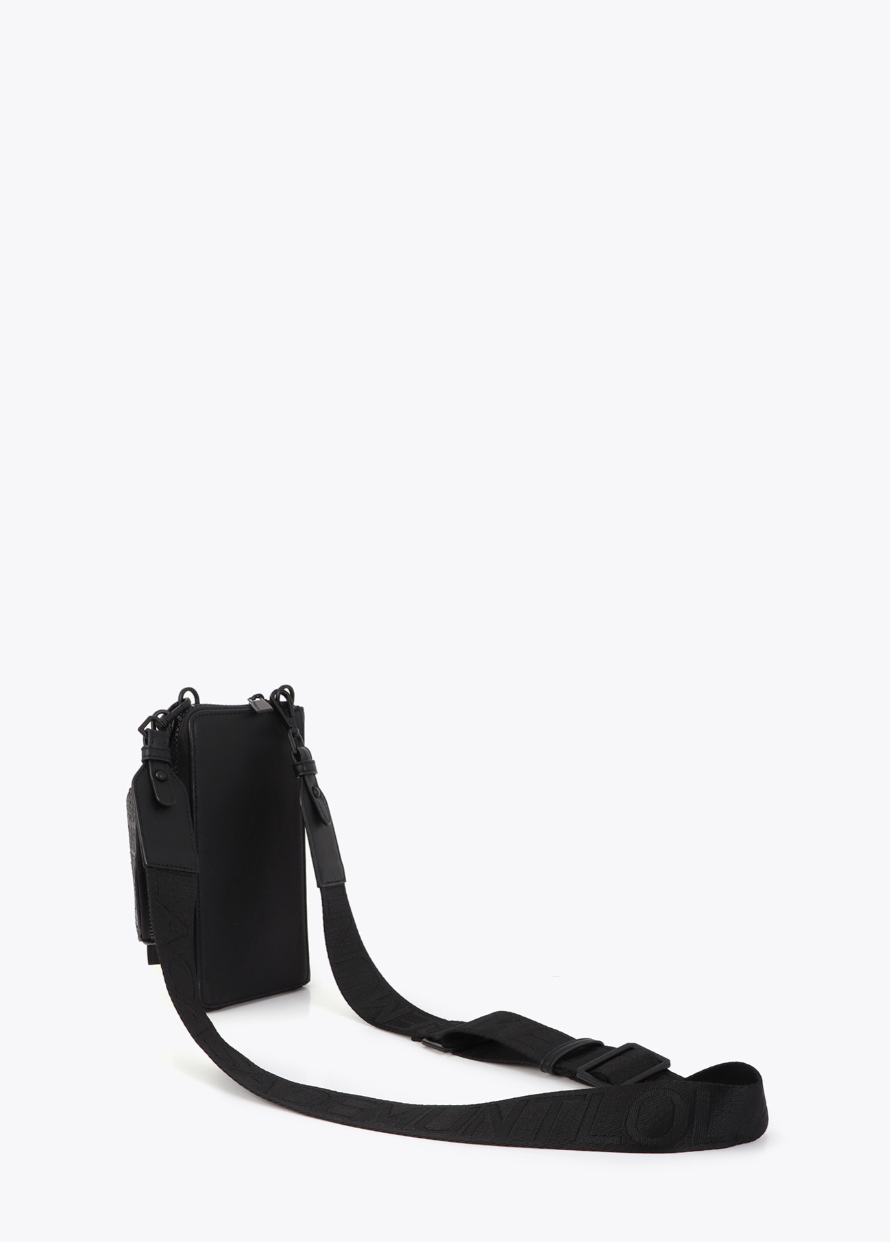 Chic mobile pouch featuring stitched logo. Comes with adjustable strap and extra compartment. Stylish design in durable material, perfect for keeping your essentials secure and organized.