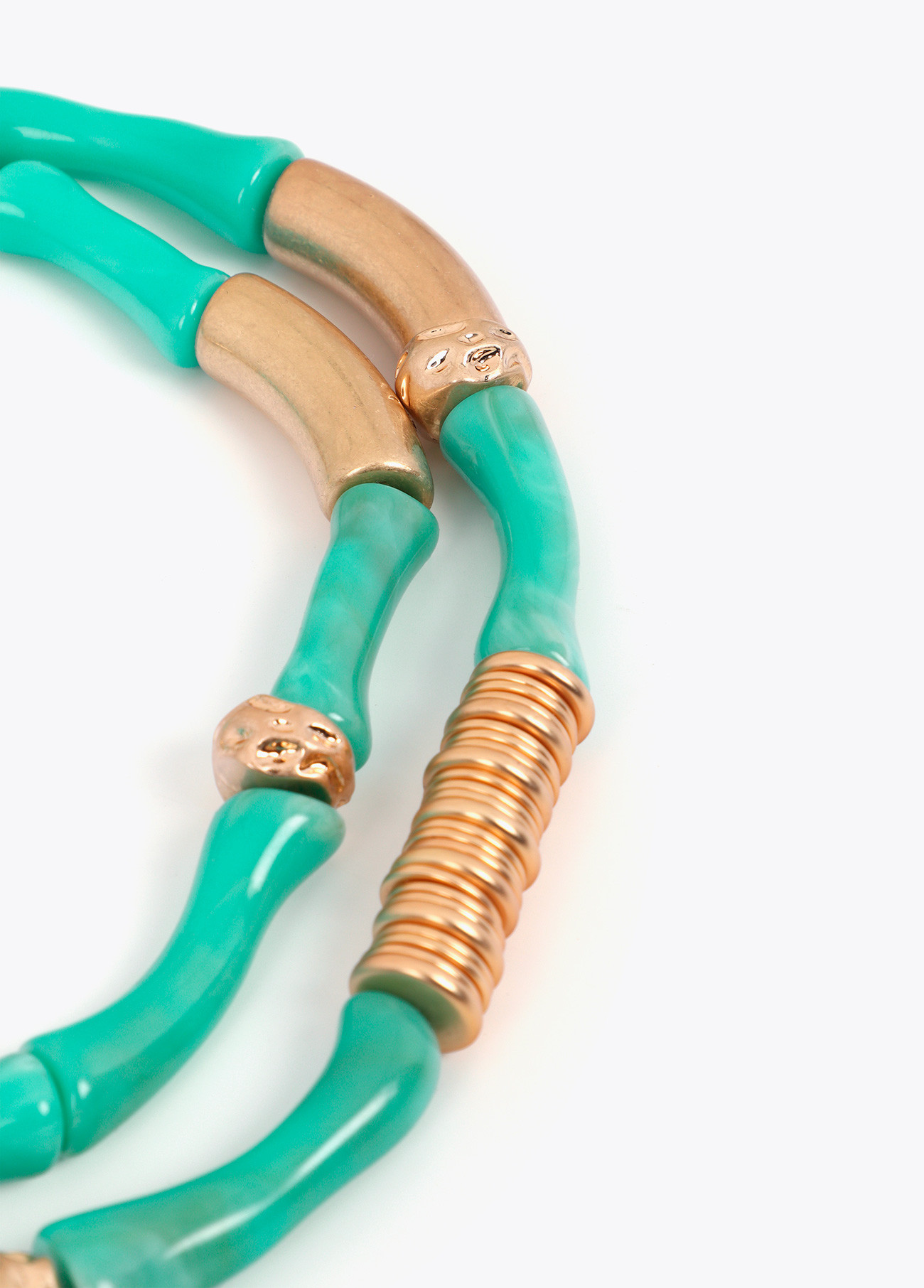 Pack of Two Combined Necklaces with Bamboo-Effect Metal Pieces