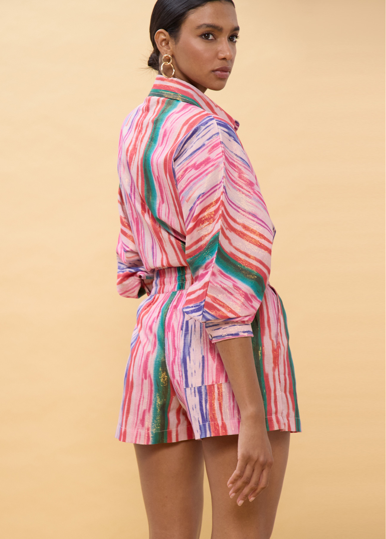 Multicoloured striped shimmer shorts