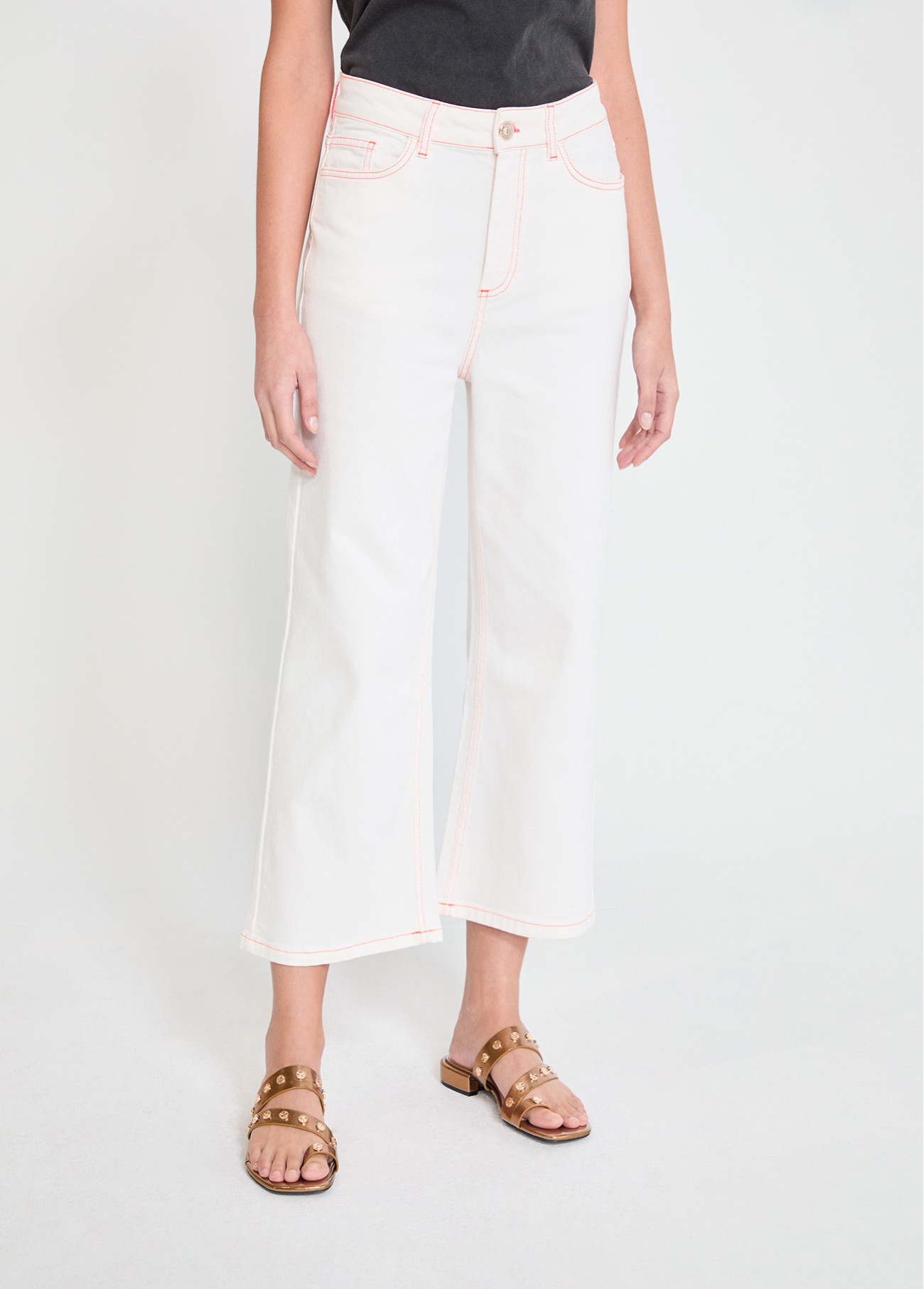 Marble-colored sarga culotte with contrast stitching that elevates the design. High waist and fluid fit ensure optimal comfort. Ideal for casual and versatile looks thanks to its modern and timeless style.