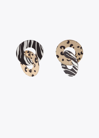 Set of rings with bicolor animal print design. Includes a gold piece with leopard print and a silver piece with zebra texture. Perfect to add a modern touch to your outfit. Made with durable and lightweight materials.