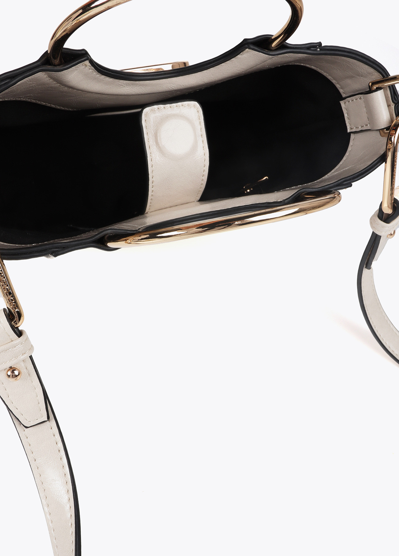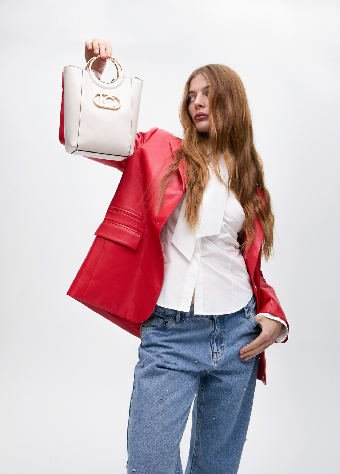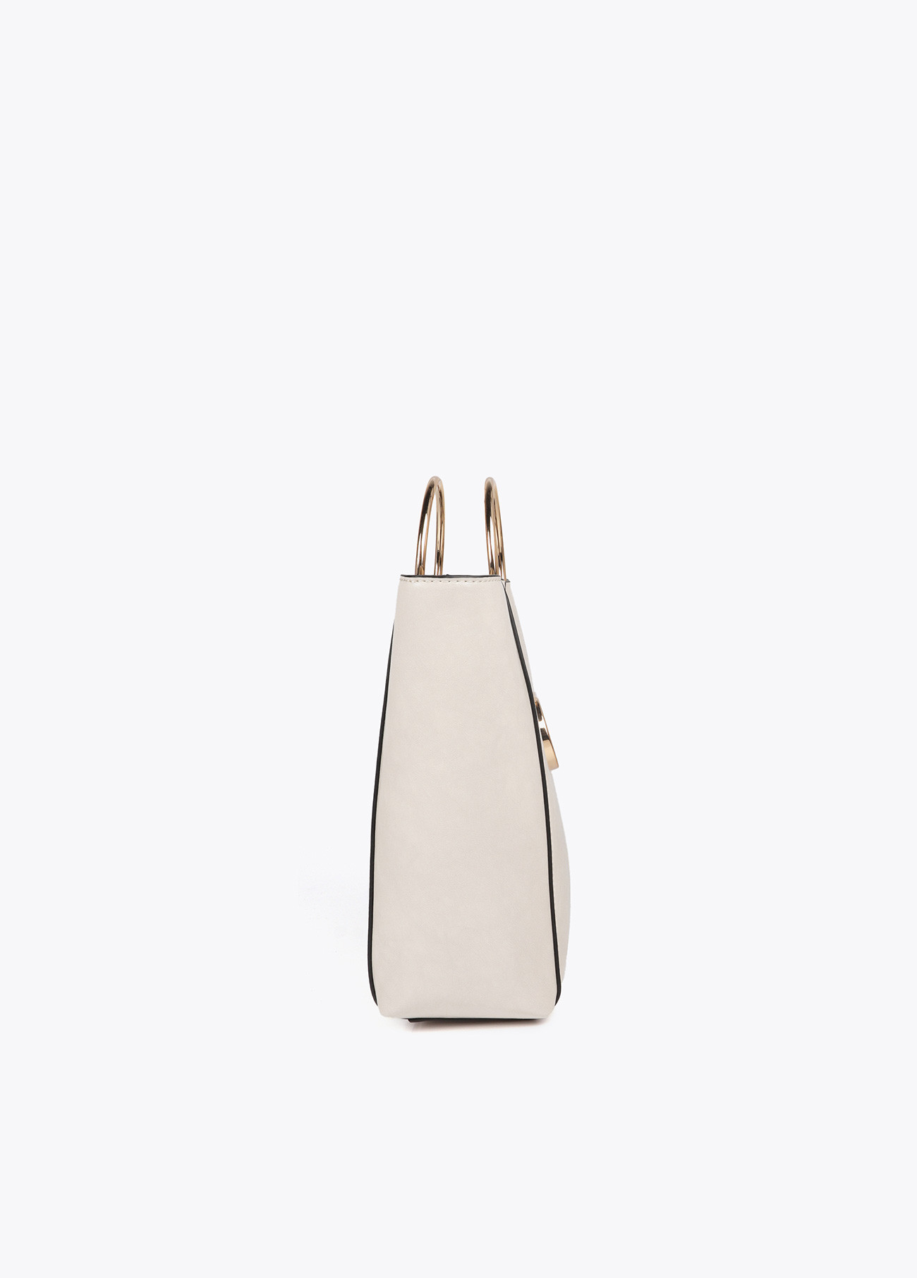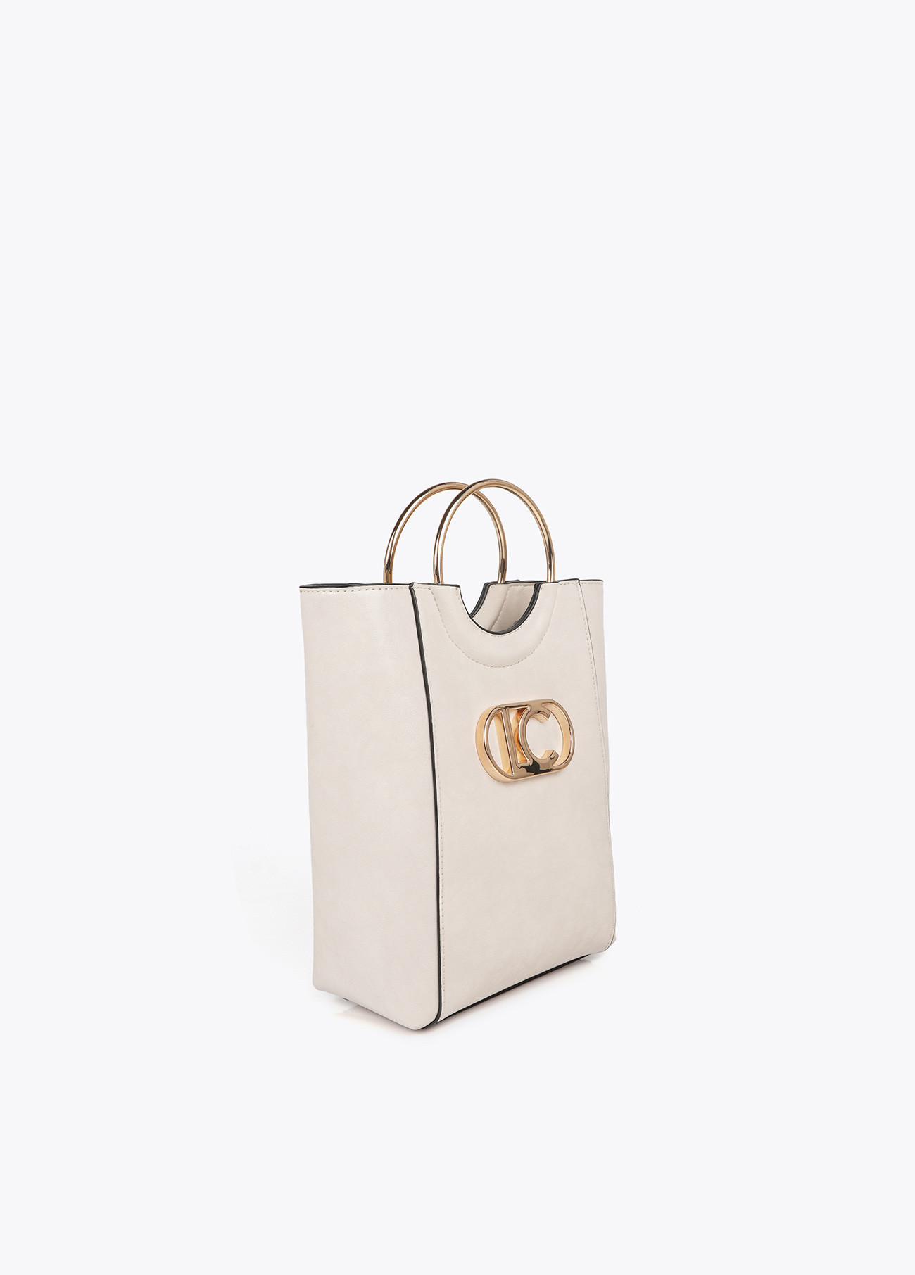 Mini faux leather tote bag with round metal strap and oval LC logo