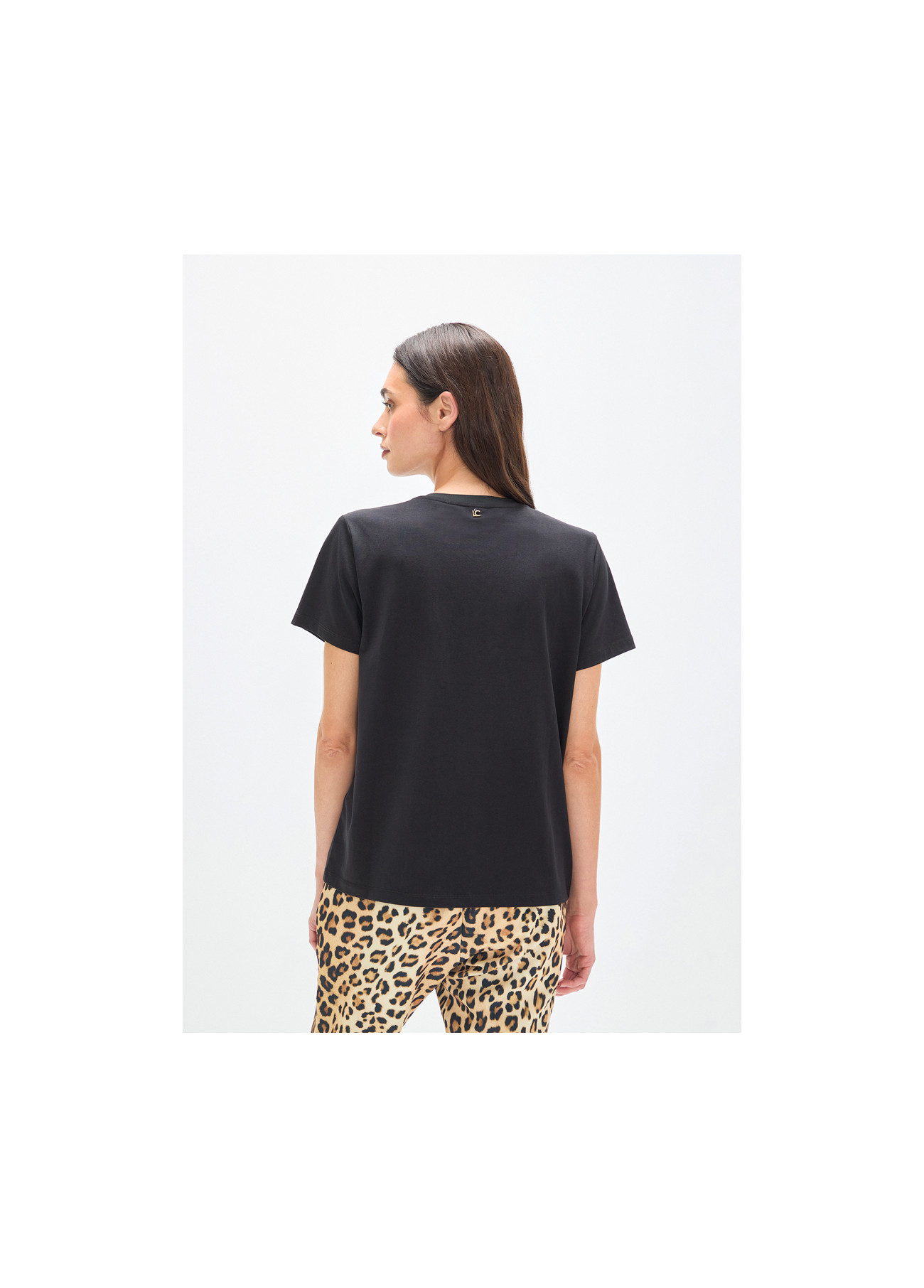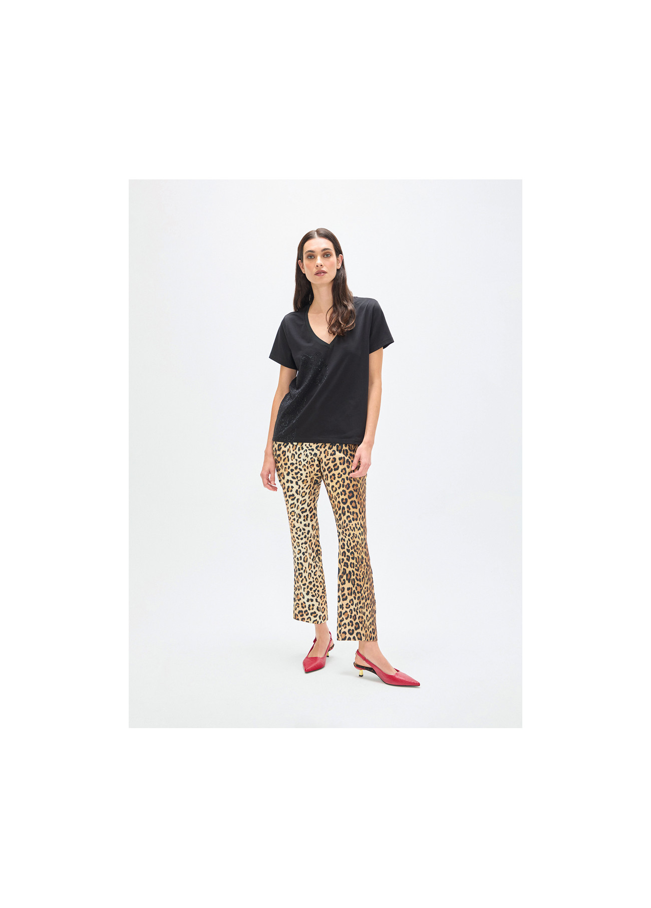 V-neck T-shirt with Positioned Animal and Strass