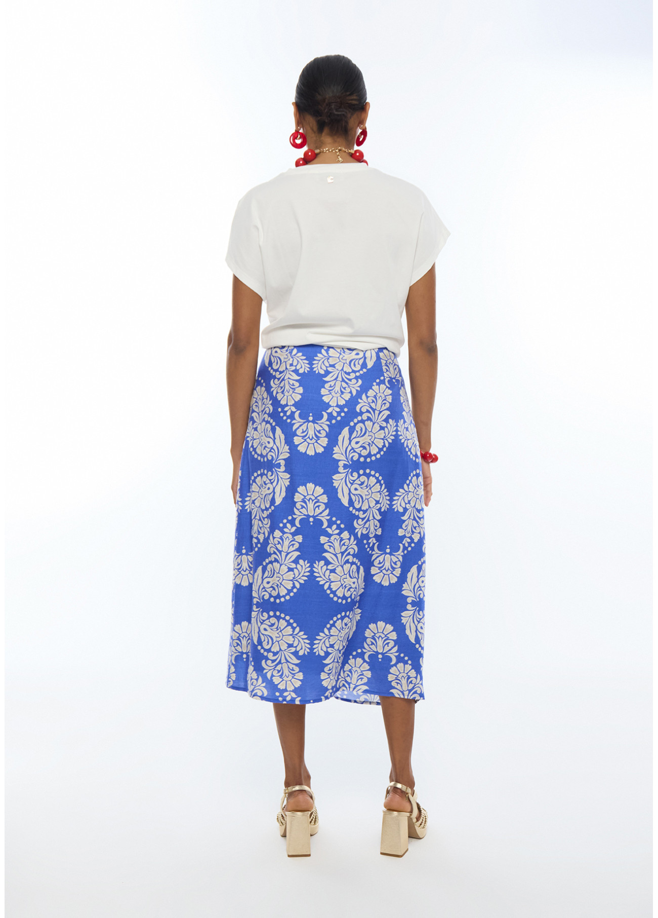Boho T-shirt with positional print, made of soft cotton. Features a relaxed fit with short sleeves and exclusive print. Perfect to pair with skirts or trousers this season.