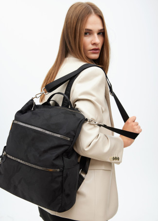 Travel bag made in jacquard nylon with camouflage pattern. Durable and spacious design, perfect for getaways. Double handles and adjustable strap. Engraved logo detail.