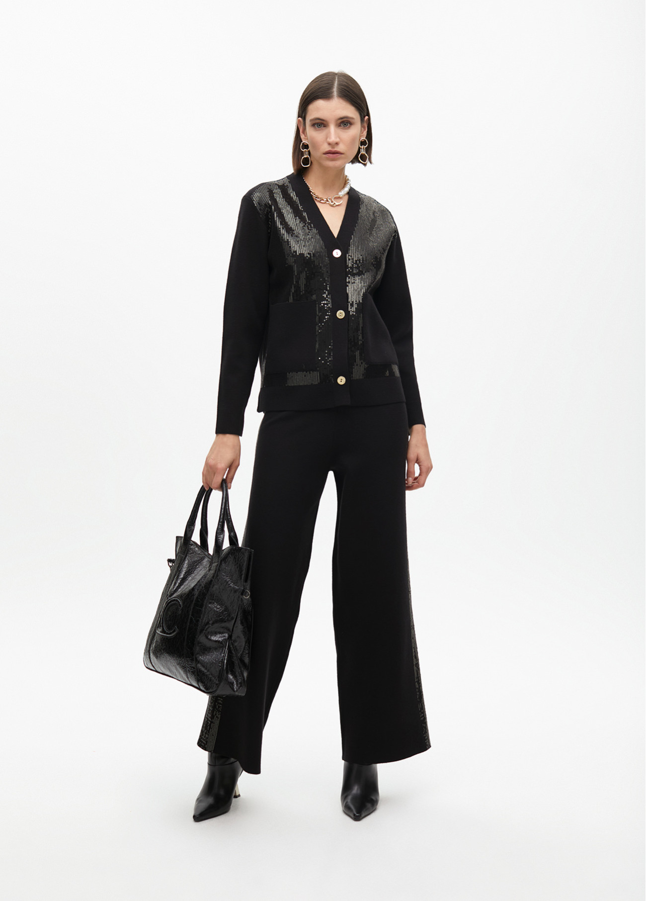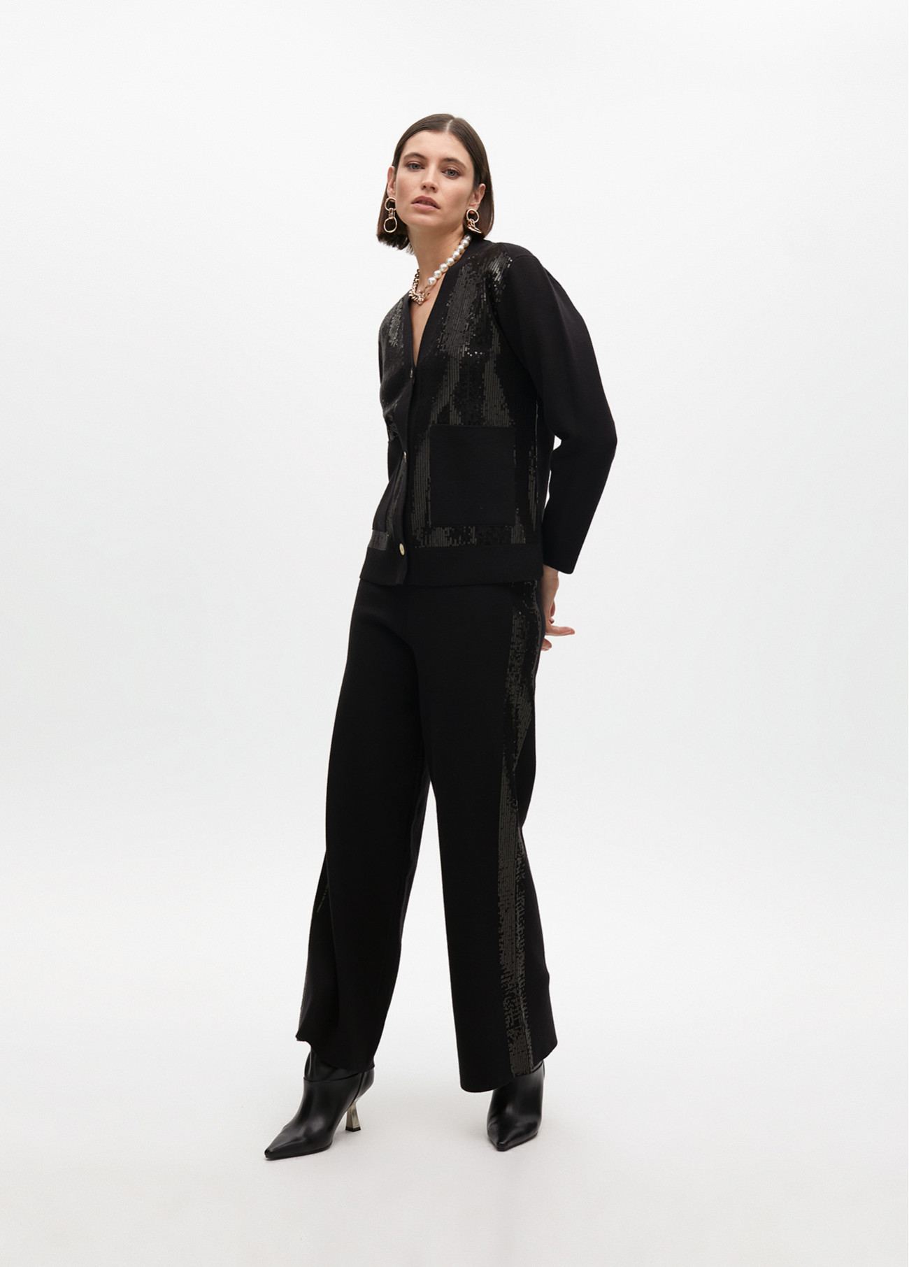 Knit trousers with side sequins