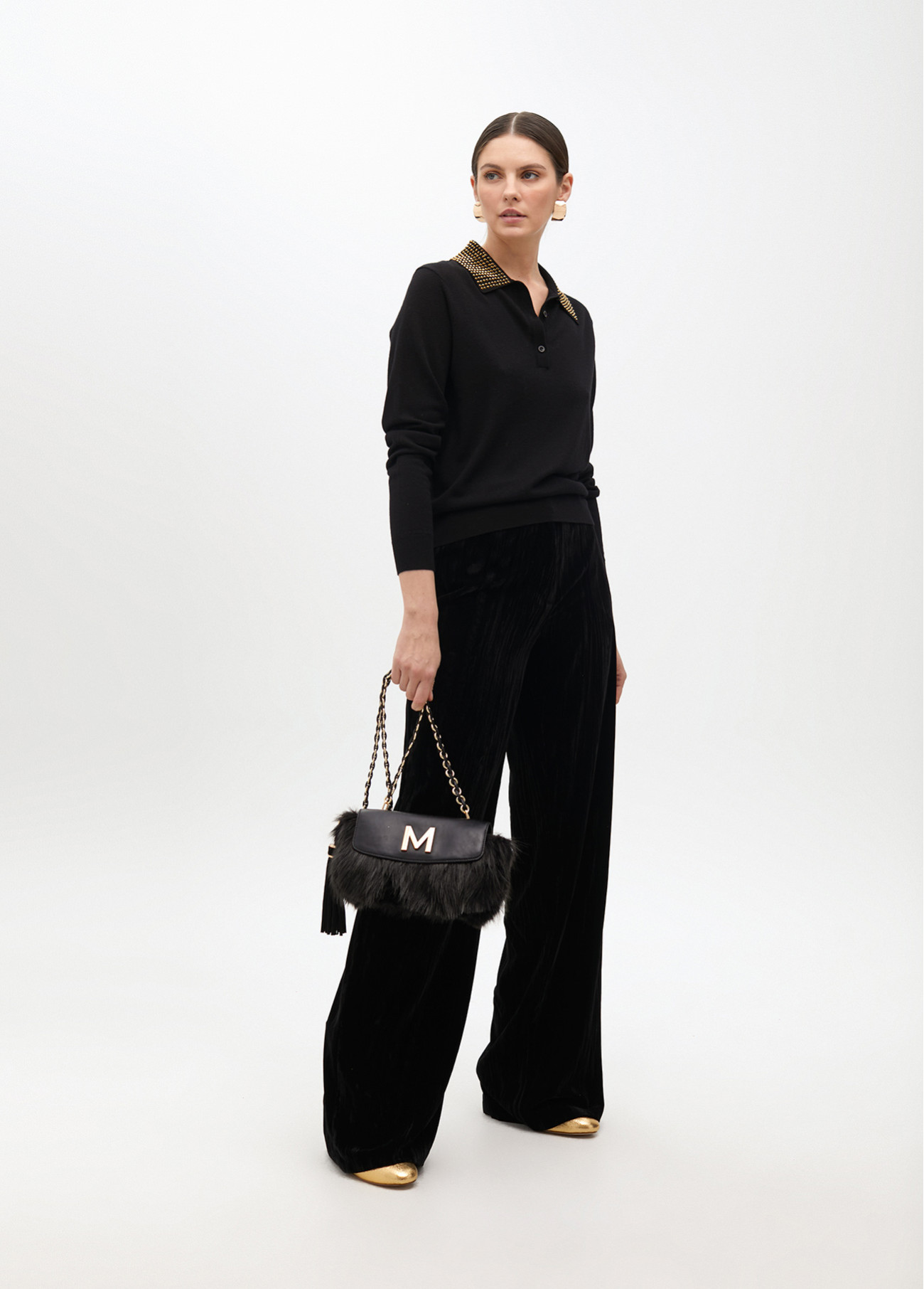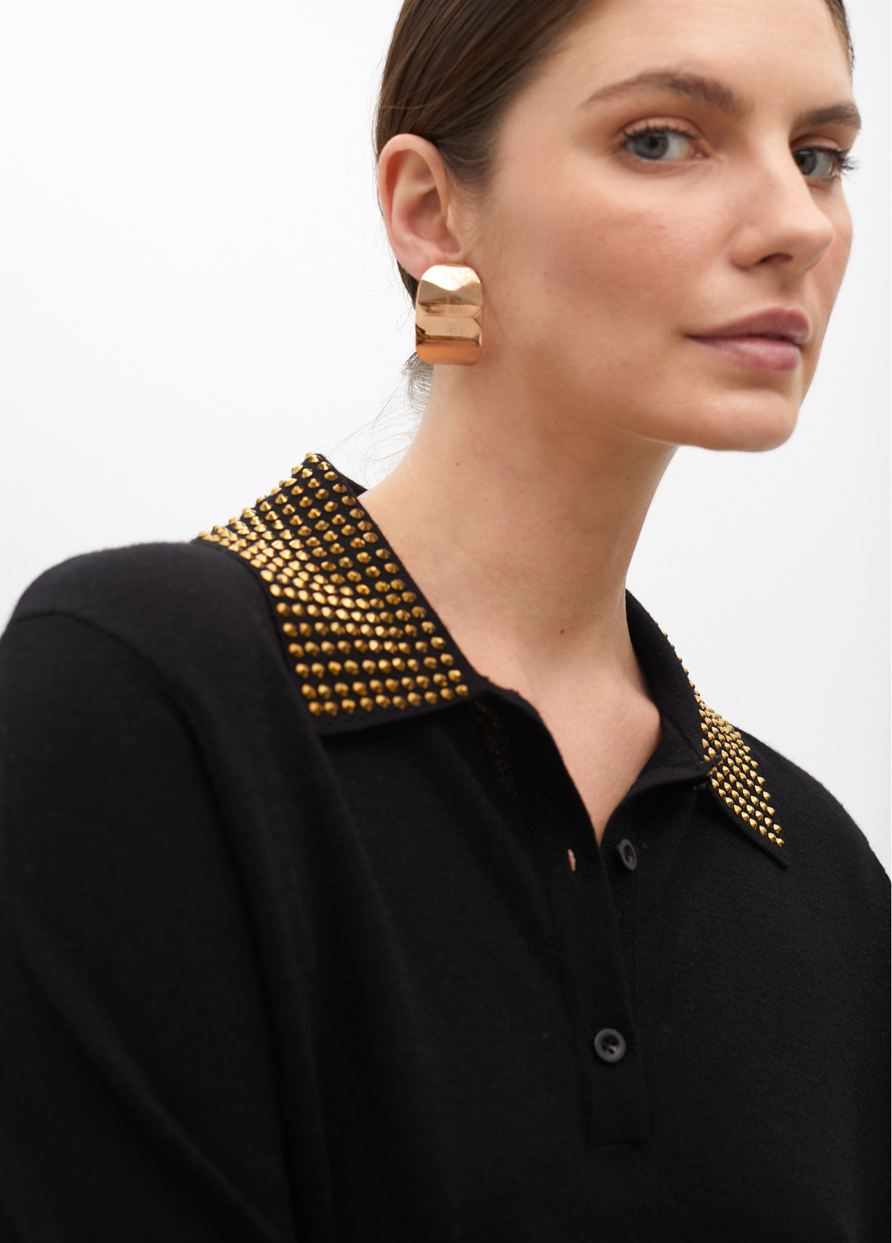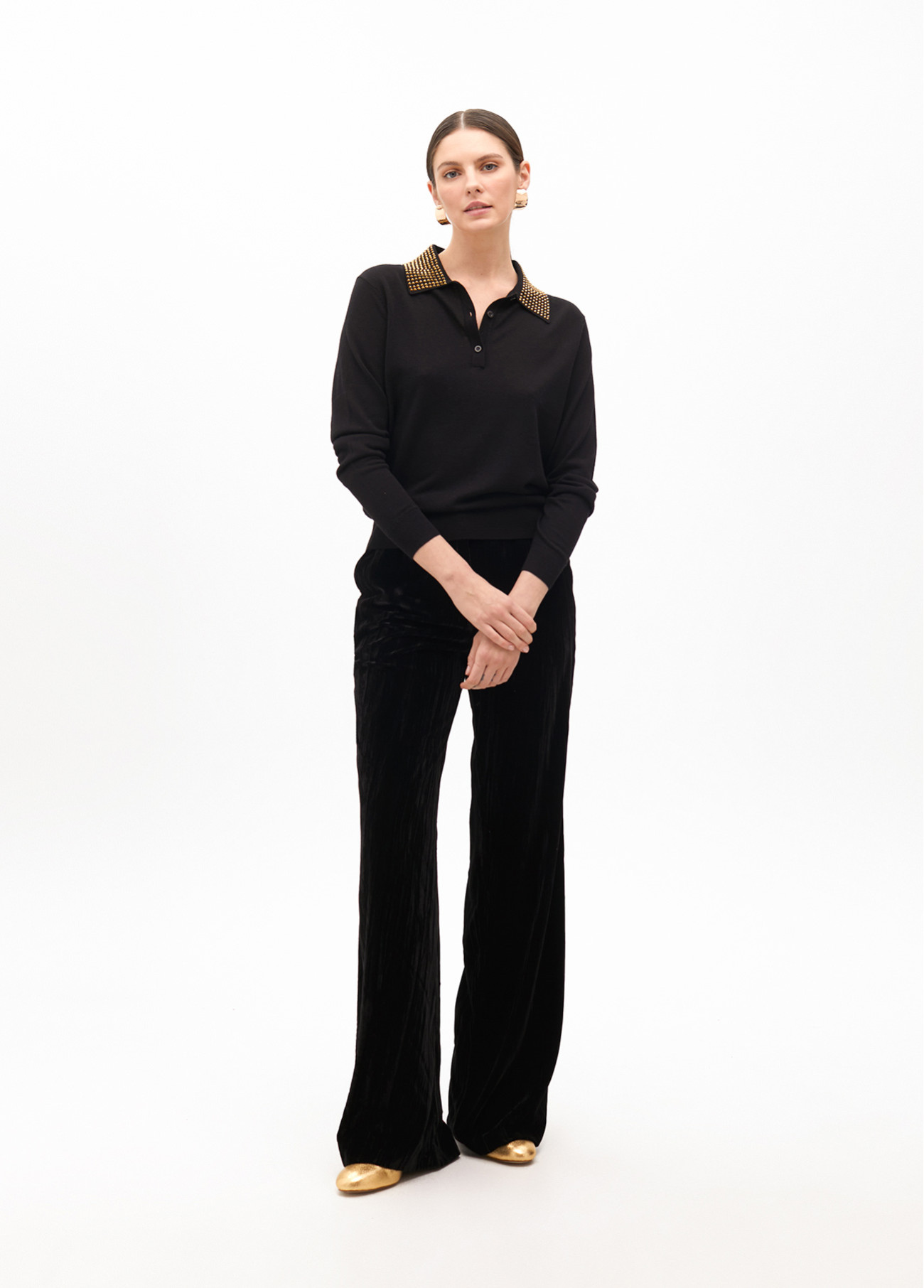 Polo sweater with rhinestone collar