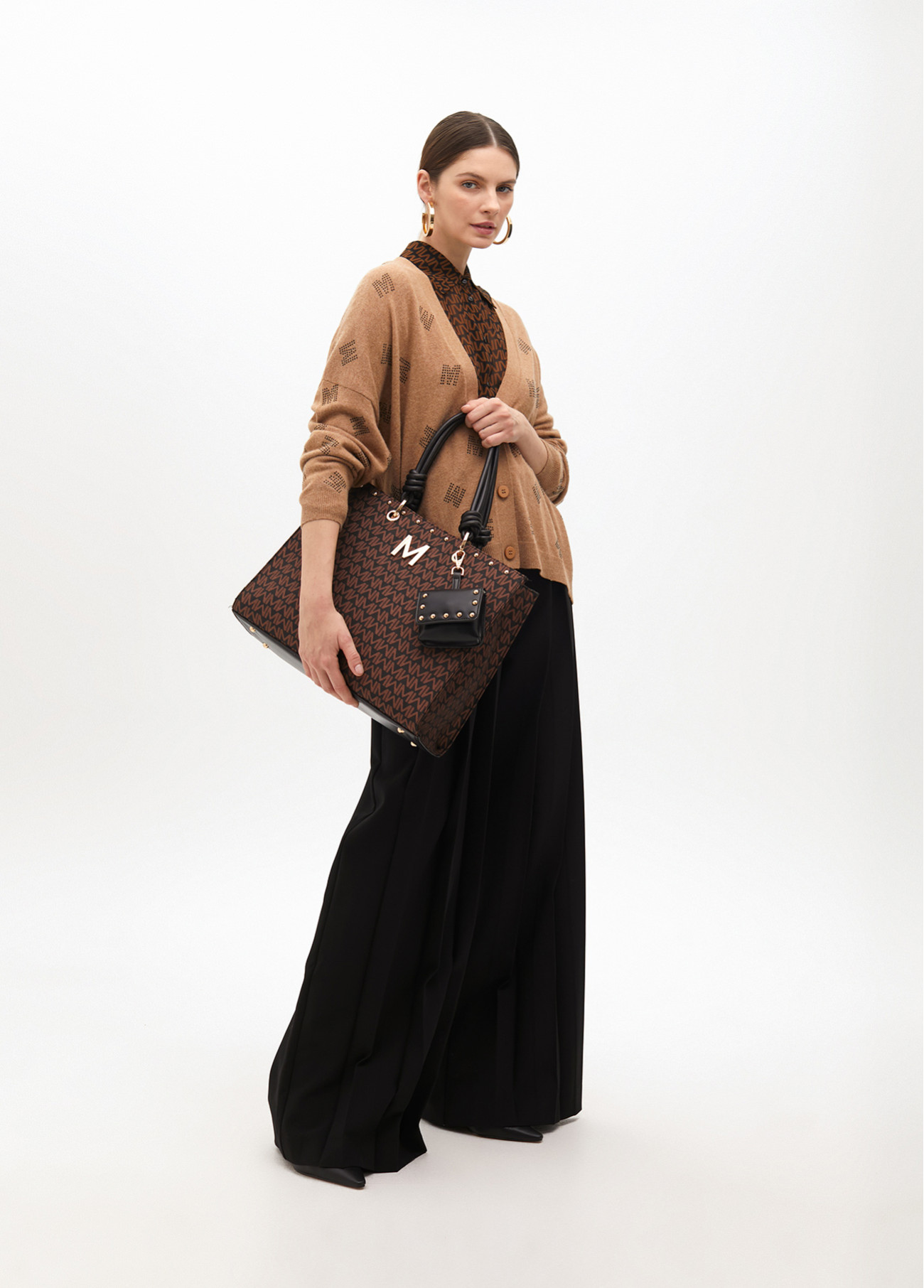 Elegant cardigan adorned with strass logos. V-neck design with button closure. Loose fit for maximum comfort. Soft and warm material perfect for mid-season.