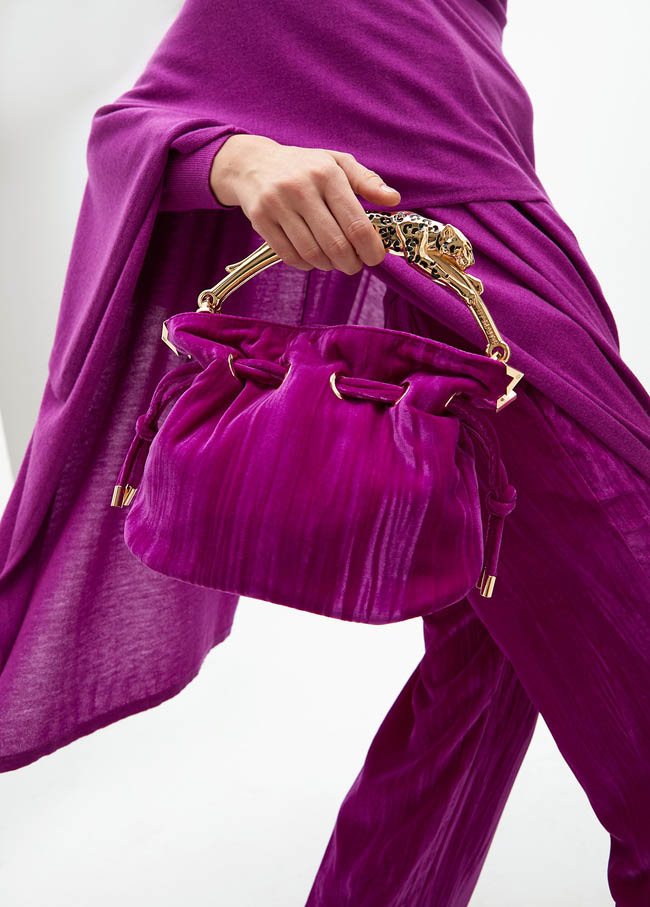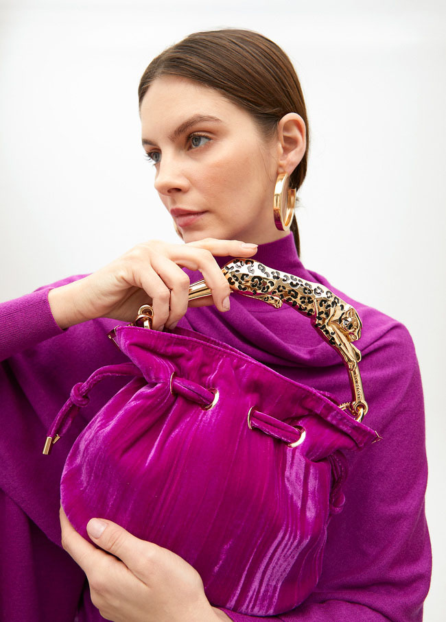 Bolso tejido plisado con asa leopardo