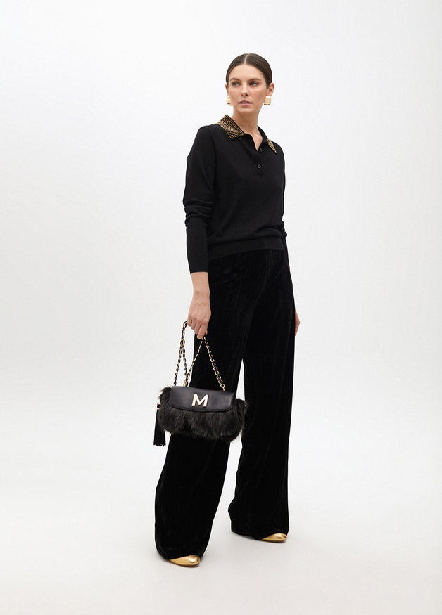 Jersey tipo polo con strass en cuello