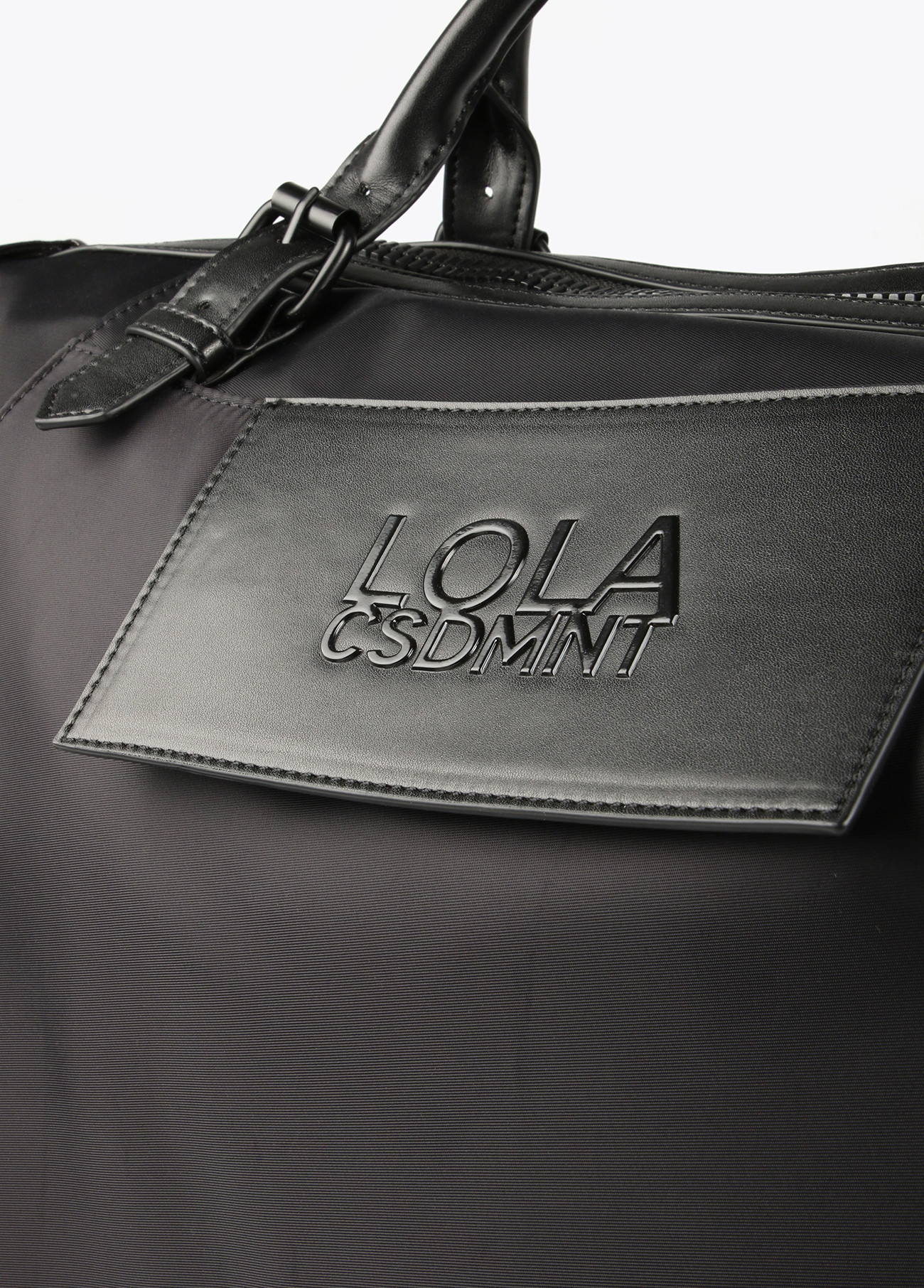 Bolso weekend en color negro de nylon con efecto piel. Presenta bolsillo frontal con logo, asas de mano y bandolera logotipada. Cierre de cremallera y prácticos compartimentos interiores. Medidas: 22.5cm x 19.5cm x 45cm.