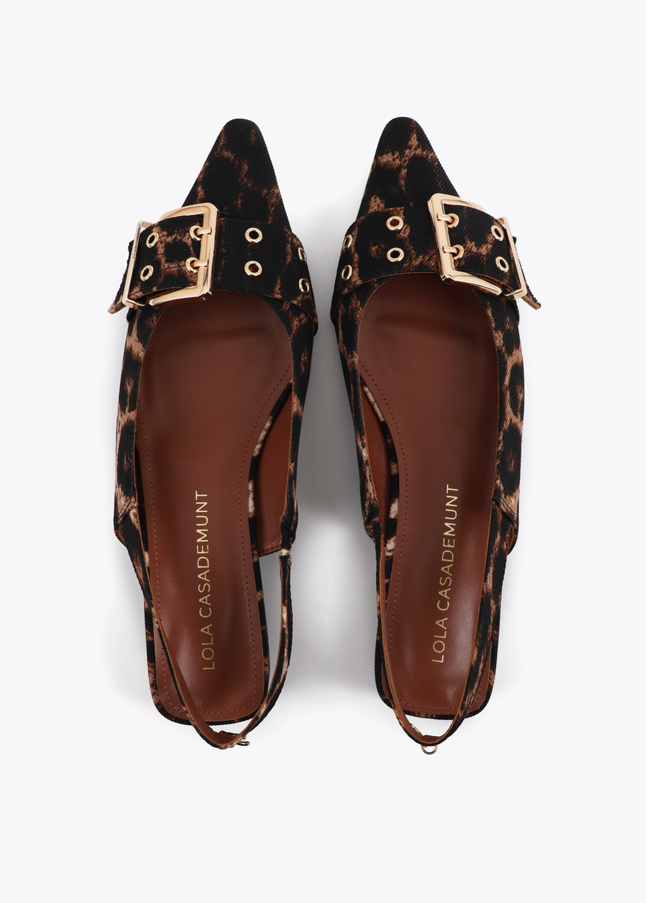 Zapato plano con diseño de tiras y hebillas personalizadas. Acabado en print animal para un look audaz. Ideal para combinar con atuendos casuales o de oficina.