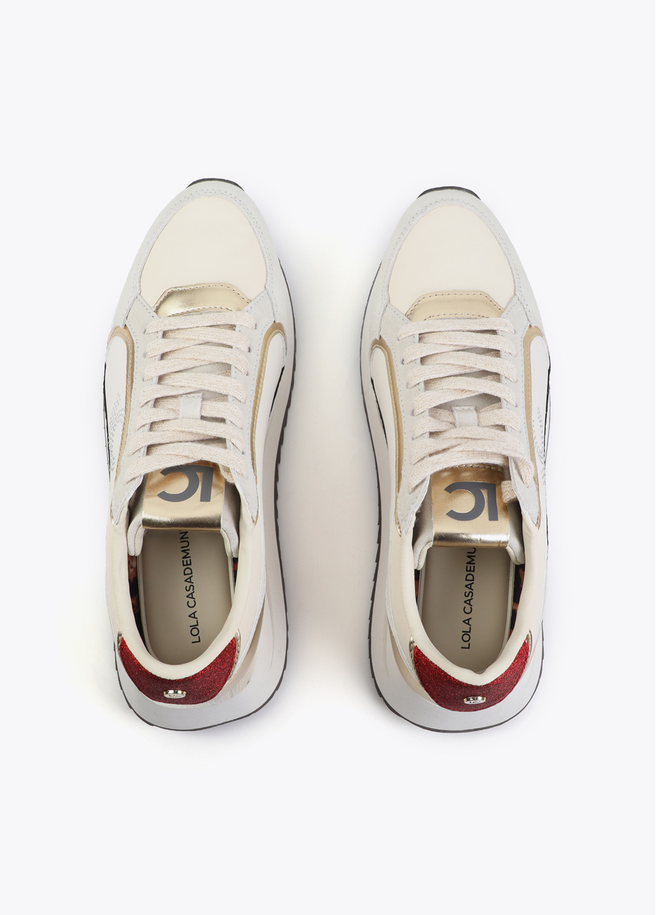 Deportiva con plataforma bicolor en tejidos combinados y detalles en piel