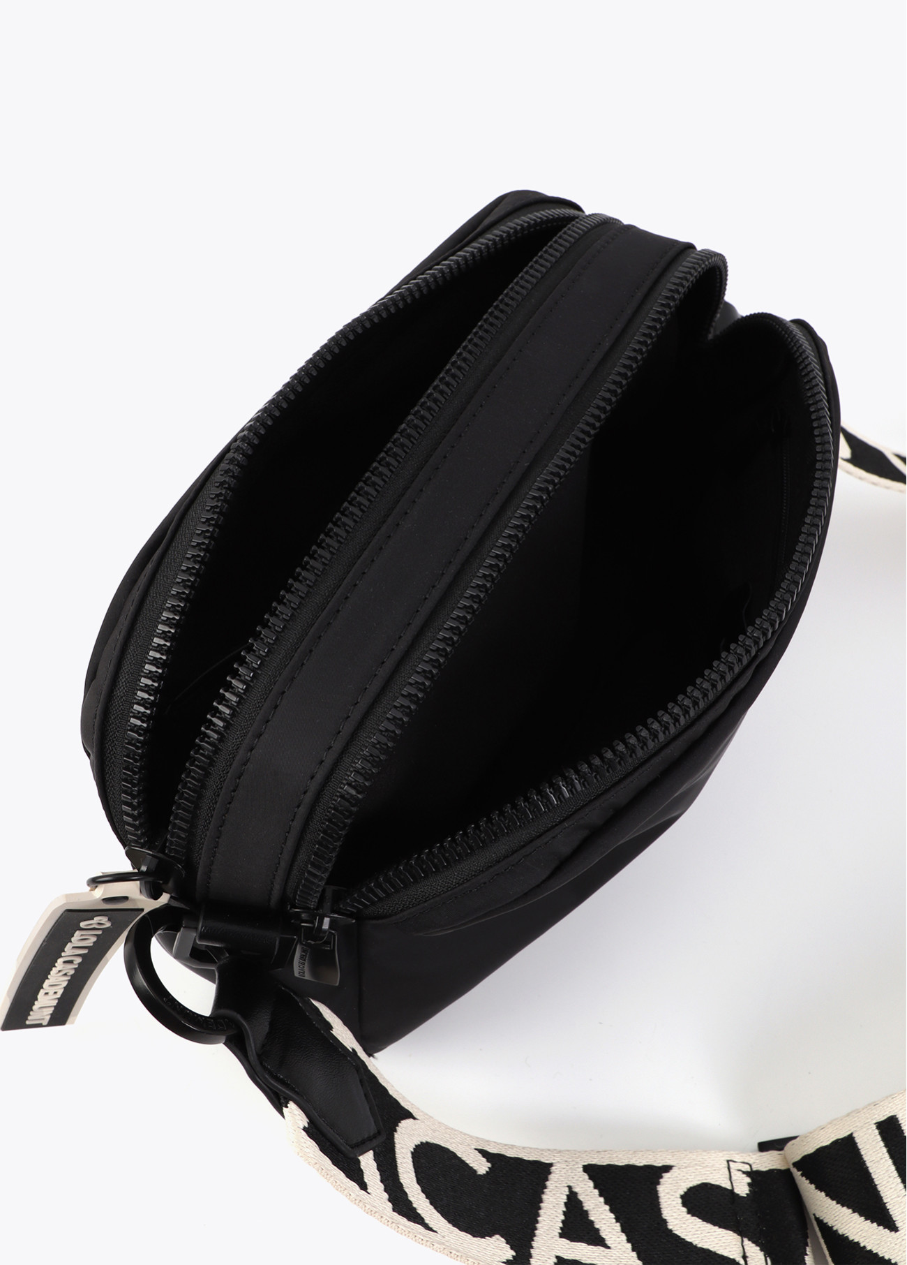 Bandolera de nylon resistente en color negro, perfecta para el día a día. Incluye un amplio compartimento principal y un bolsillo frontal texturizado. Correa ajustable con logotipo para mayor comodidad y estilo.