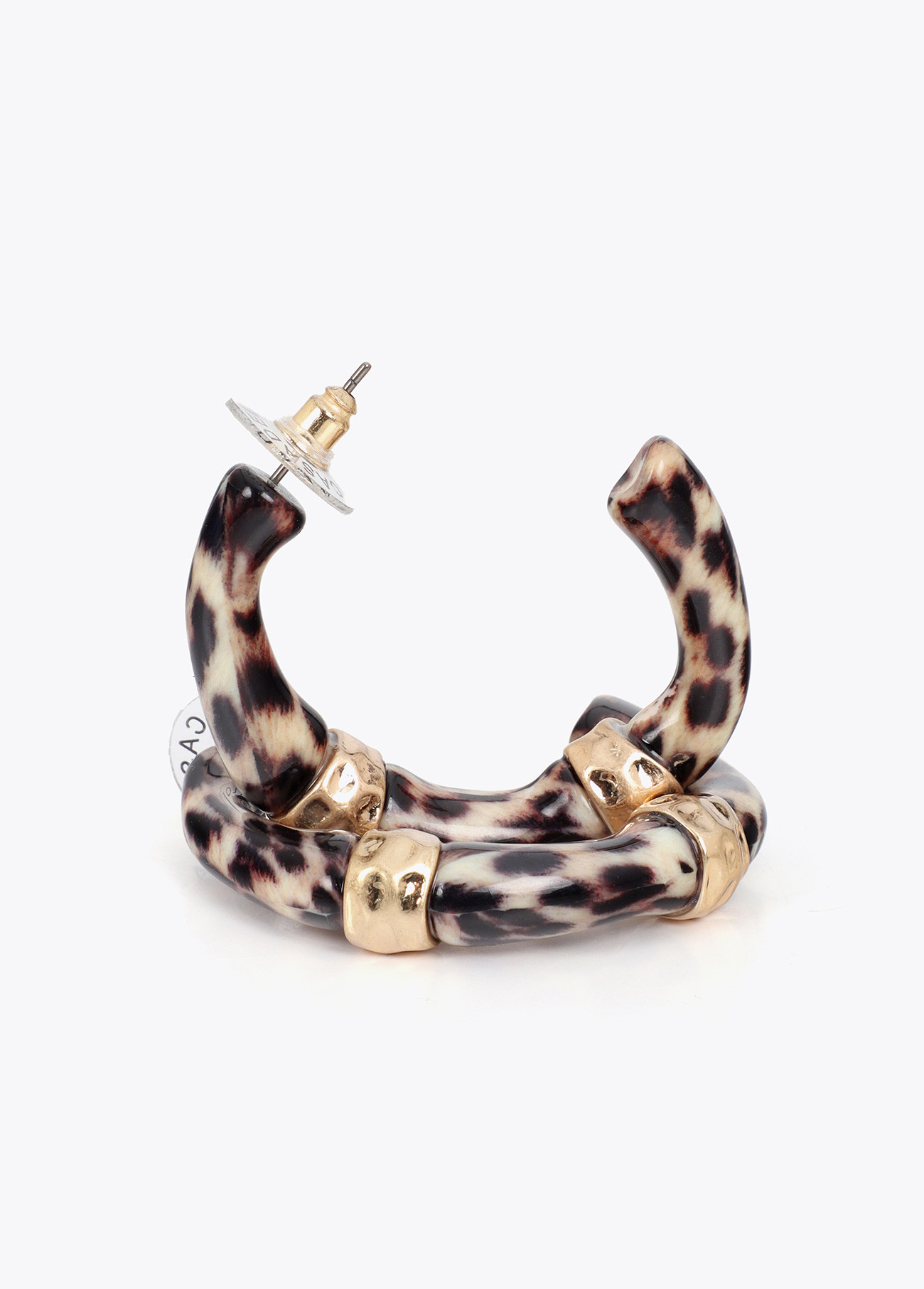 Pendientes de aro con un audaz diseño efecto bambú y estampado animal print. Fabricados en material resistente, con cierre de tuerca segura. Un accesorio versátil para añadir un toque salvaje y elegante a cualquier atuendo.